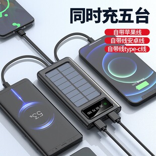 新款 20000毫安移动电源 3c认证太阳能充电宝自带线户外便携式