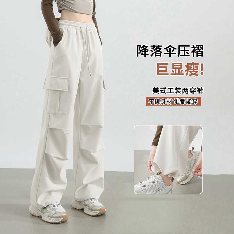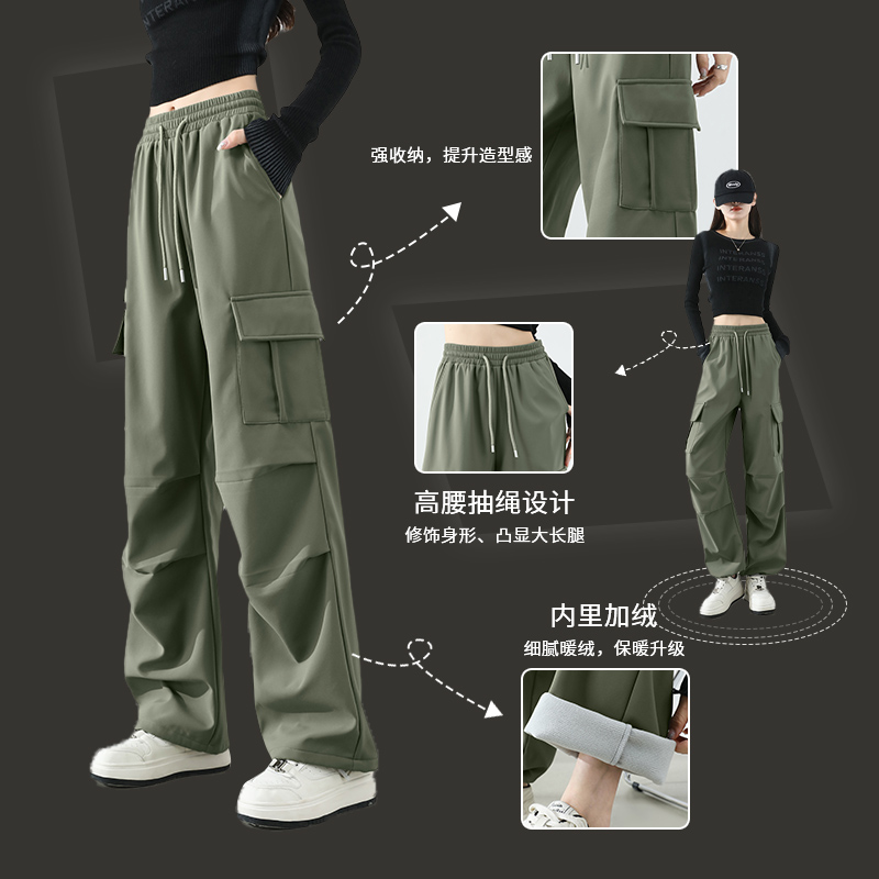 防风伞兵加绒阔腿裤 班尼路灰色三防软壳工装 冬季 女2025新款 子H 裤