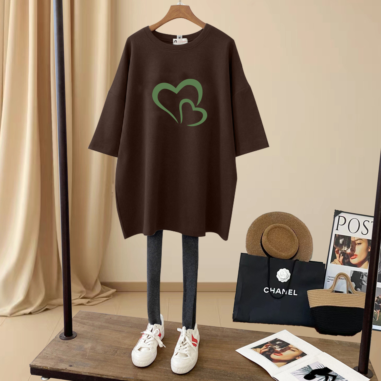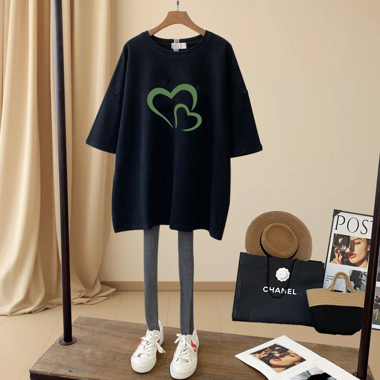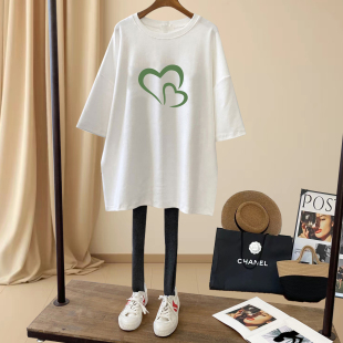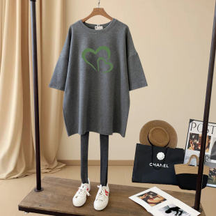 搭配鲨鱼裤 t恤女中长款 休闲上衣加厚款 打底衫 新款 春秋季 磨毛短袖
