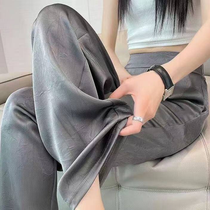 国风宽松直筒裤 大码 缎面提花垂感丝滑阔腿裤 300斤胖MM休闲裤 子