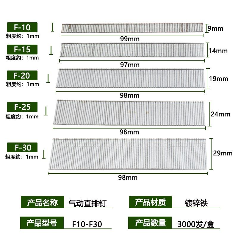 百得F30直钉气动枪钉F10F15F20F25气排钉木工钉子直排钉射钉 汽钉