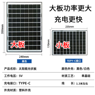 5V太阳能板监控发电板摄像头专用光伏板大功率快充电板通用6V兼容