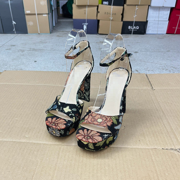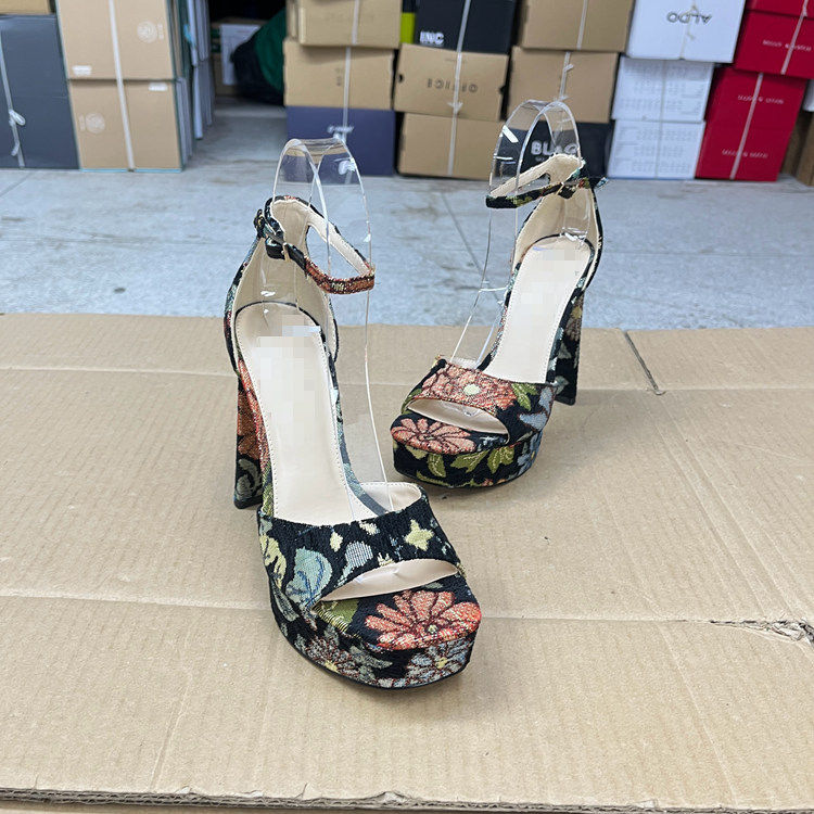凉鞋 外贸原单女鞋 方头气质厚底粗高跟一字扣时装 shoes新款 时尚