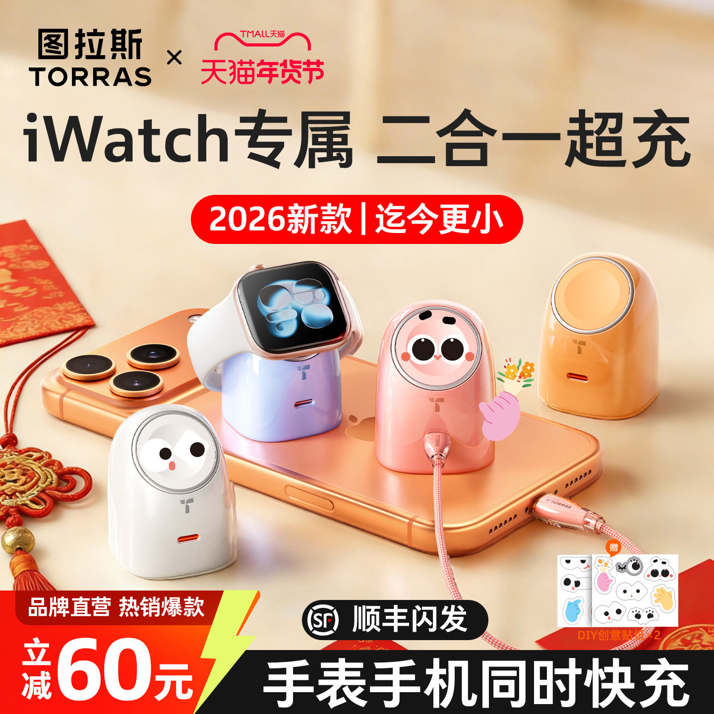图拉斯大眼仔小e适用苹果手表充电器Applewatch快充ultra3无线iwatch磁吸iPhone17ProMax充电头45W二合一S11