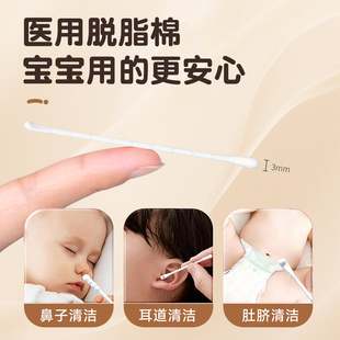 恒品医用棉签一次性新生婴儿掏耳鼻屎消毒脱脂棉球超细双头棉花棒
