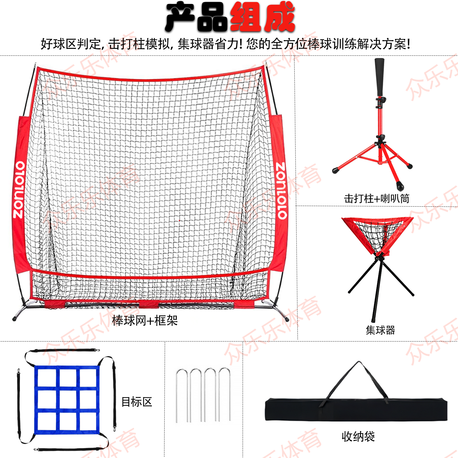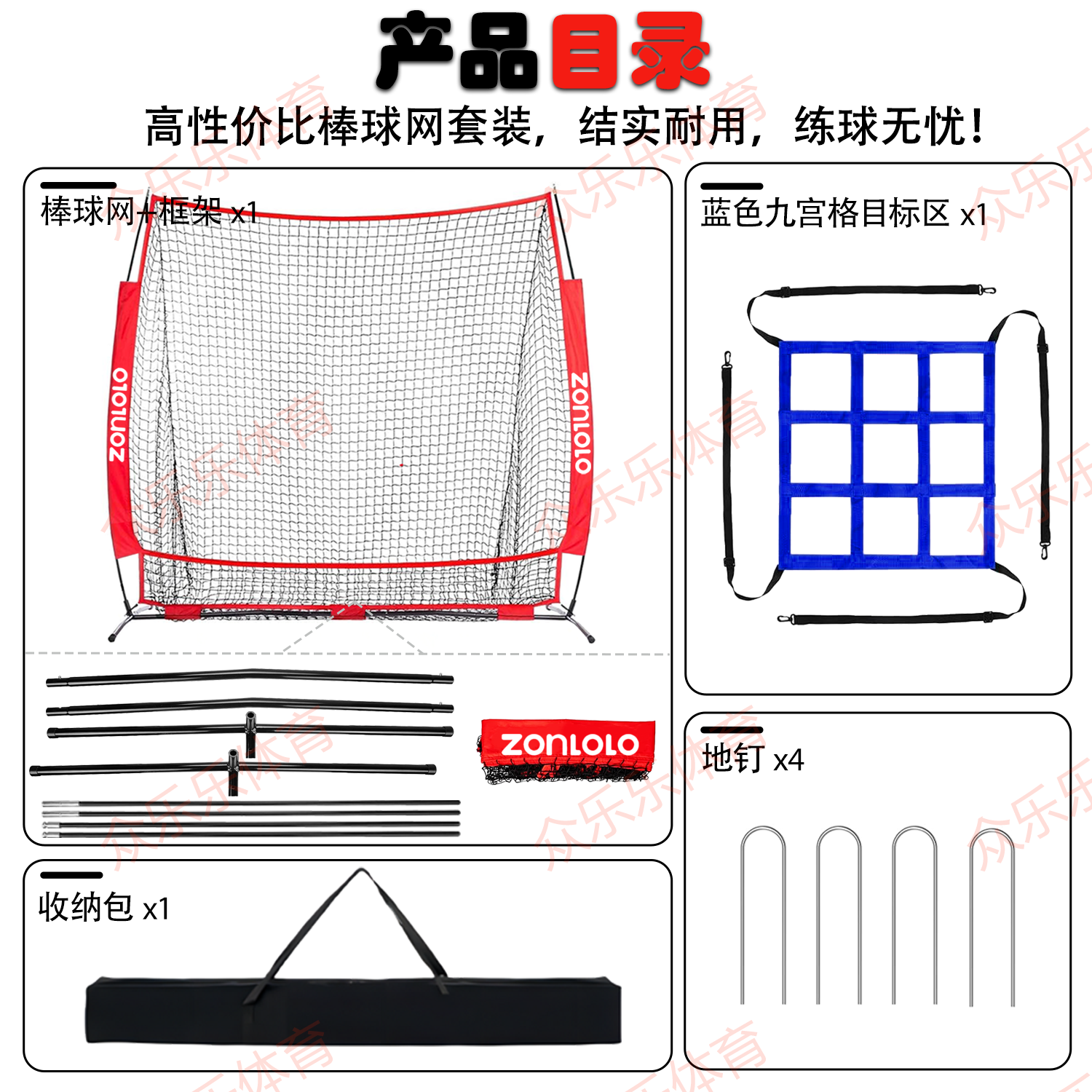 便携式 棒球训练网垒球投球练习网室内外棒垒球打击网大口袋目套装