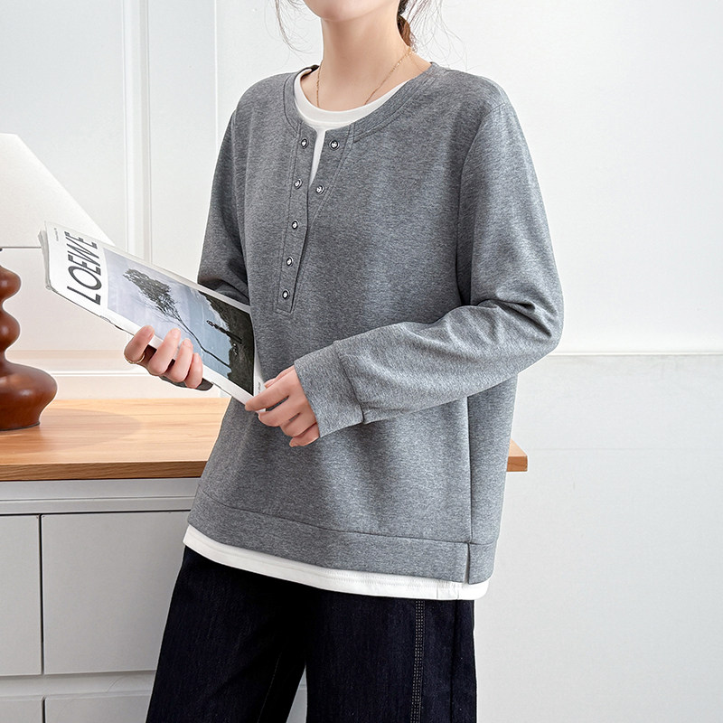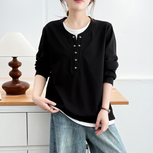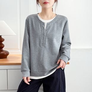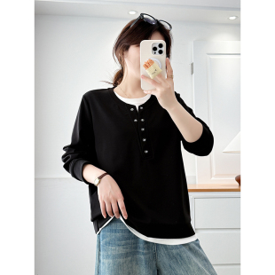 胖mm设计感假两件无帽卫衣女2026春新款 女装 休闲上衣外套 大码 翠袖