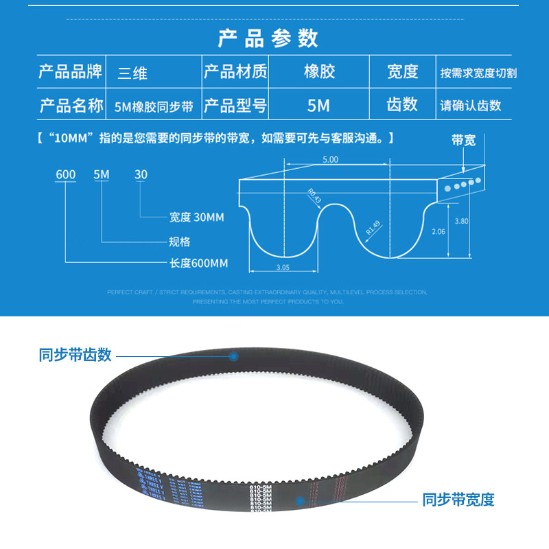 360齿传动工业皮带 1800圆弧齿型354 橡胶同步带HTD5M 1770