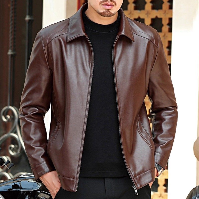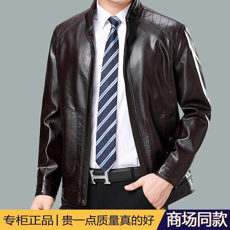 2025春秋新款 秋冬款 pu皮皮衣男冬季 时尚 加绒加厚爸爸装 皮夹克男士