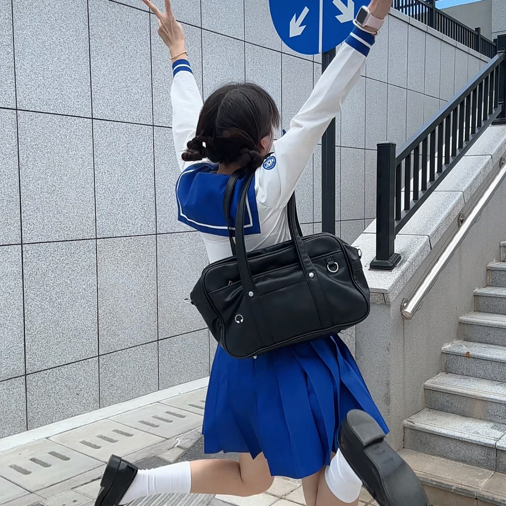 透气深蓝校裤 高腰舒适加绒保暖高中学生厚款 子加绒加厚冬季 校服裤