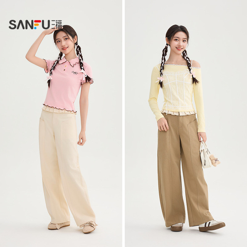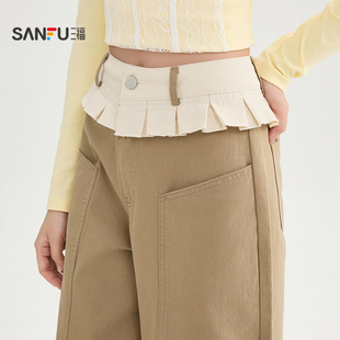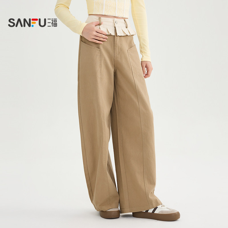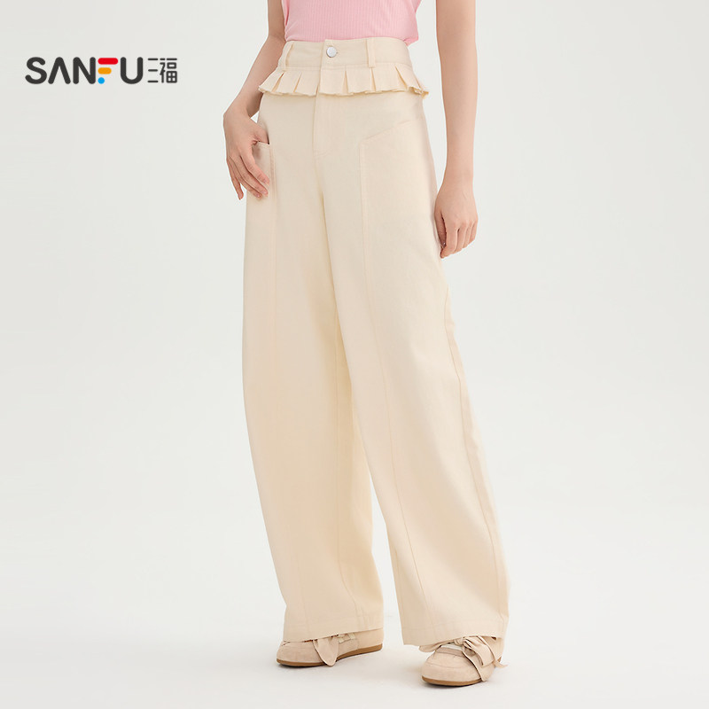 三福休闲裤 女装 2025秋季 长裤 505900 百褶花边腰头宽松弯刀裤