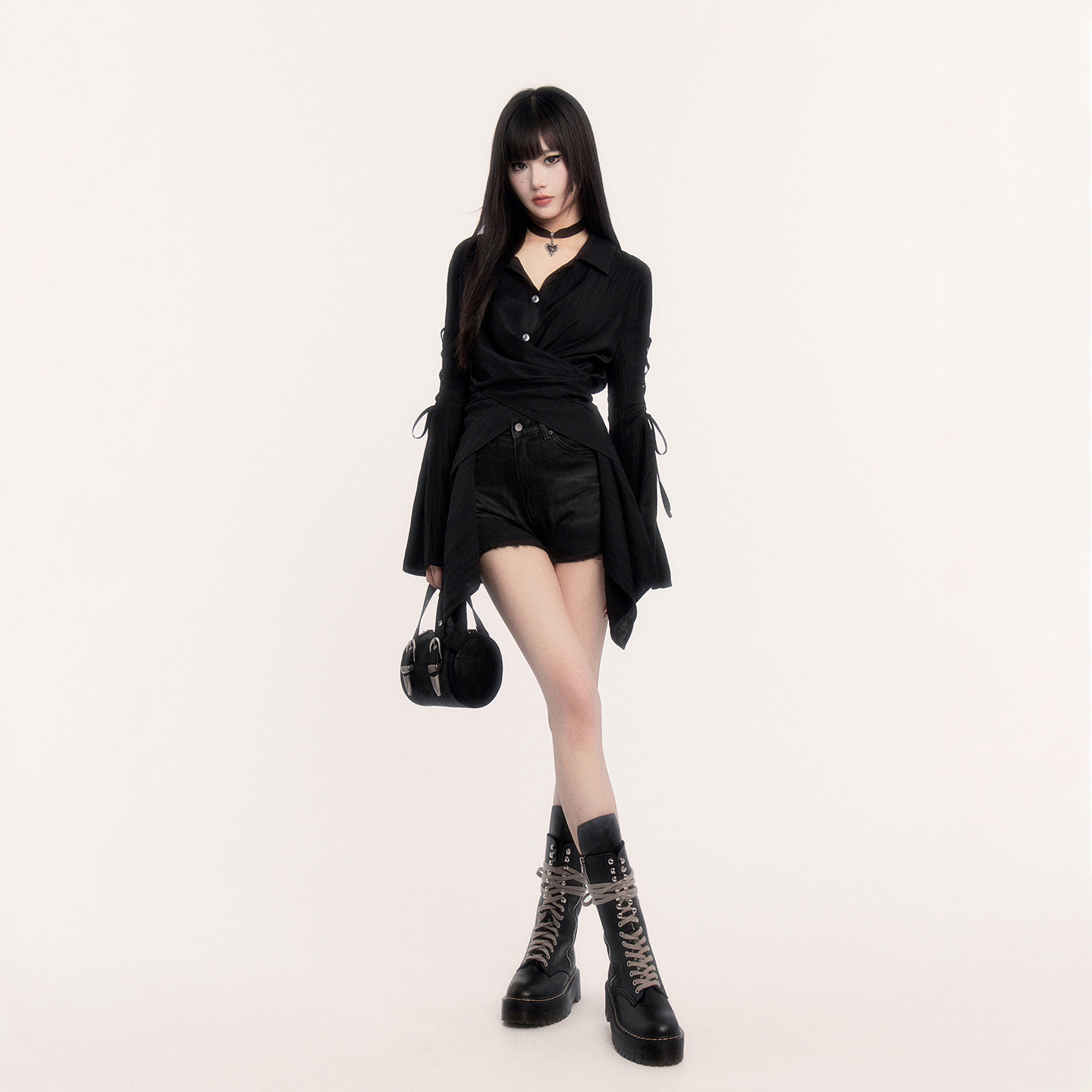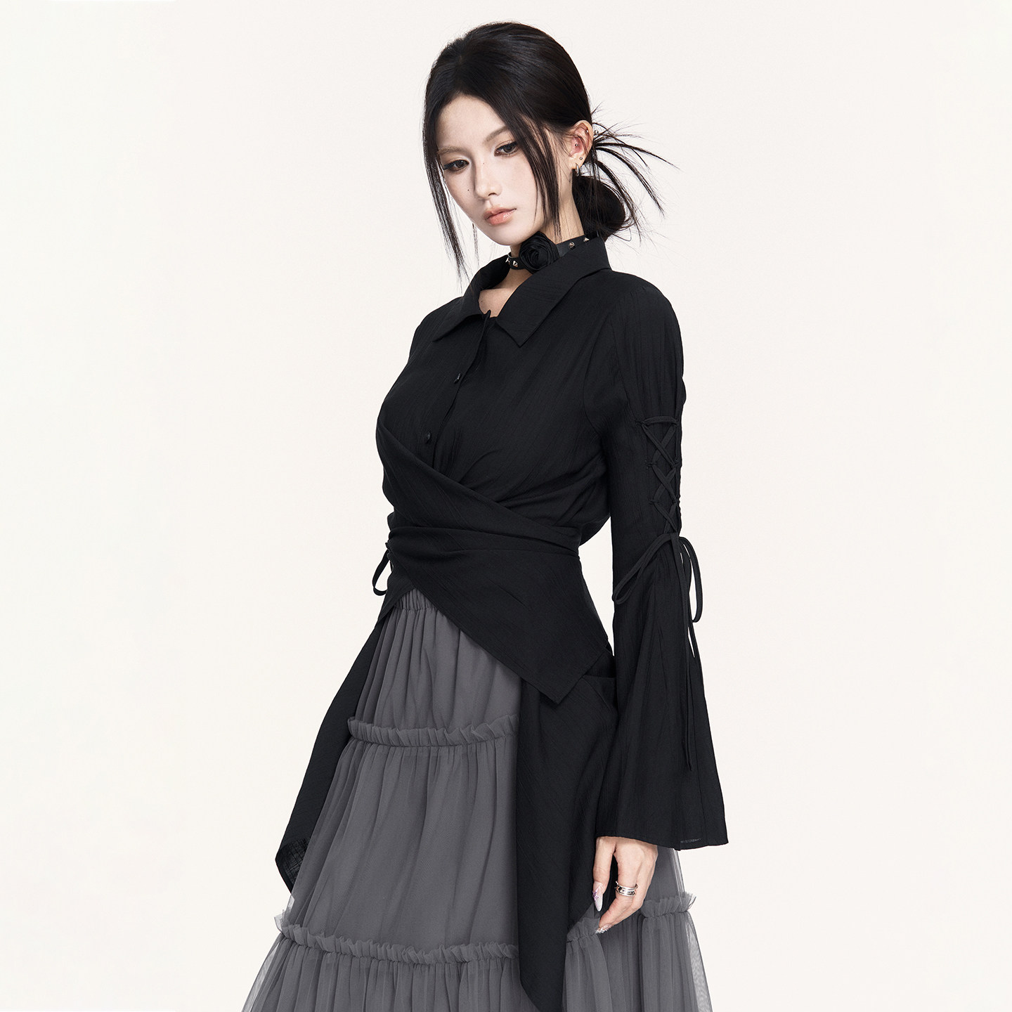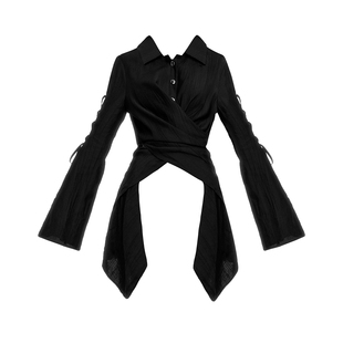 白色收腰褶皱肌理感短袖 Brandy 辣妹衬衫 美式 polo领上衣 Bm春新款