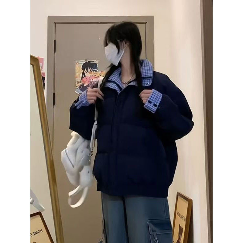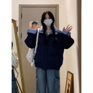 2024冬季 设计感双层领假两件棉服女百搭拼接学生宽松保暖 新款