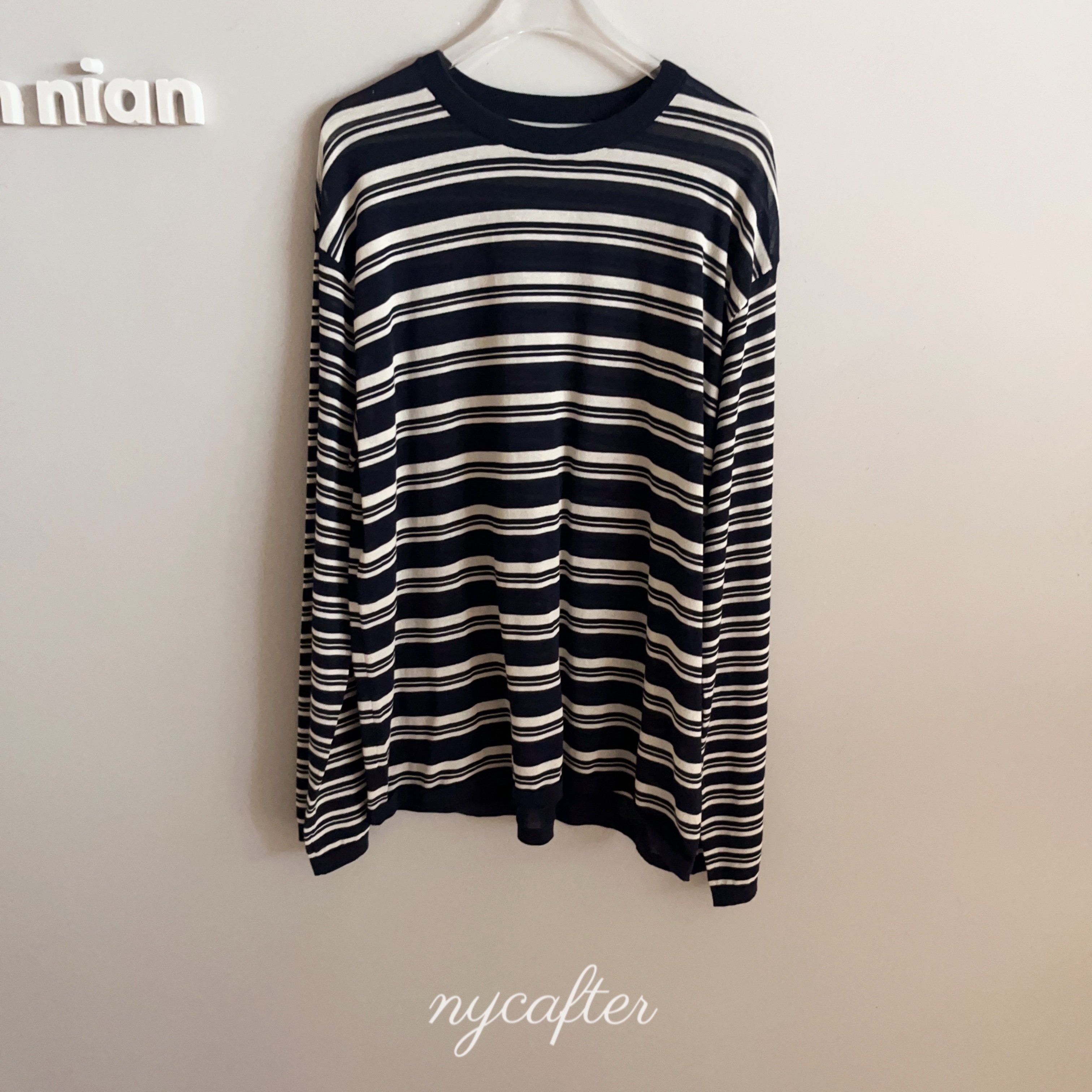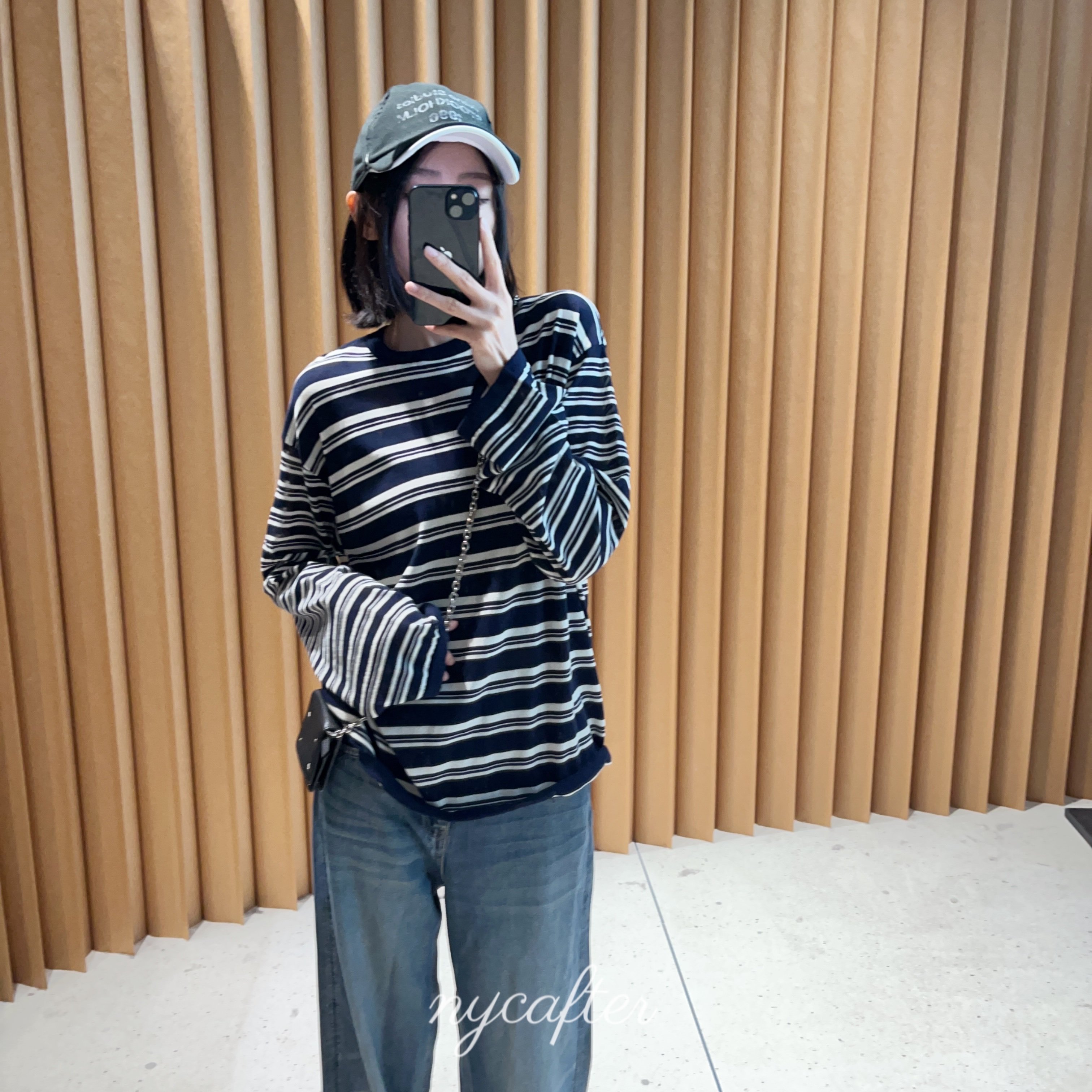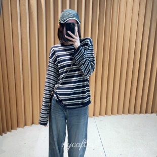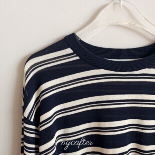 含绵羊毛条纹落肩针织长袖 nycafter新款 250748 念念