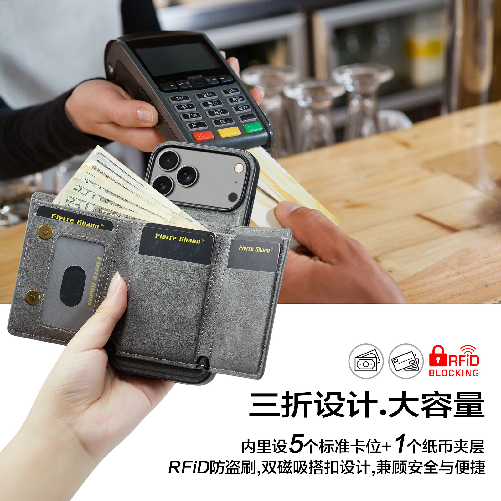 16pro 皮革magsafe磁吸卡包卡套卡咭钱包大容量多卡位可放钱rfid防盗刷适用苹果iphone17