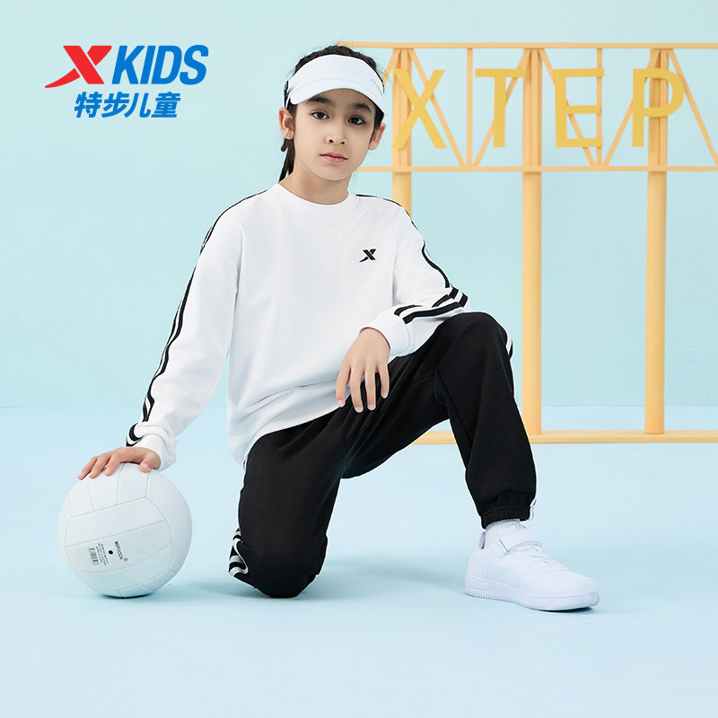 运动服两件套儿童套头卫衣套装 特步童装 新款 2026年春季 男大童套装