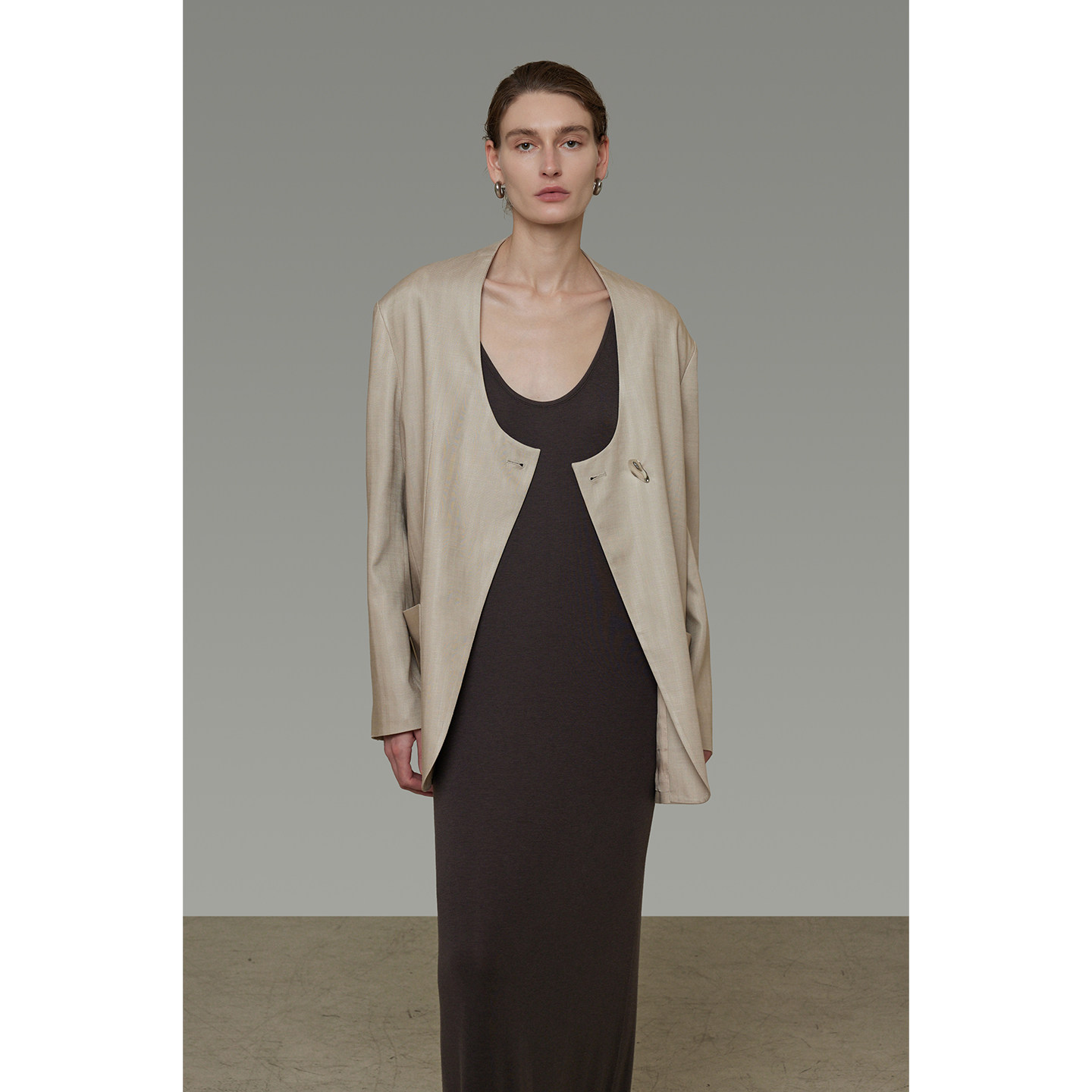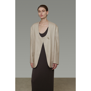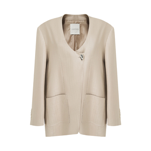 VCFSI简约休闲风男士 外套商务通勤单西卡其色宽松西服 西装