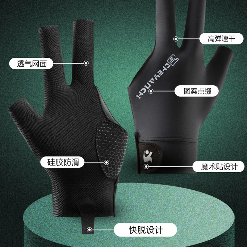 台球手套三指轻薄透气露指防滑斯诺克桌球防滑单只装 台球桌球手套
