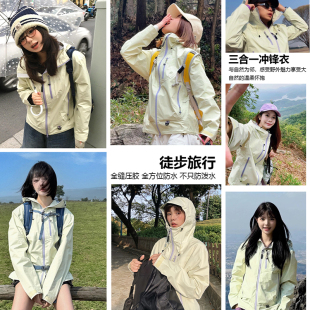 稻草人雪霁黄短款 三合一超好看可拆卸旅行外套 冲锋衣女士2026新款