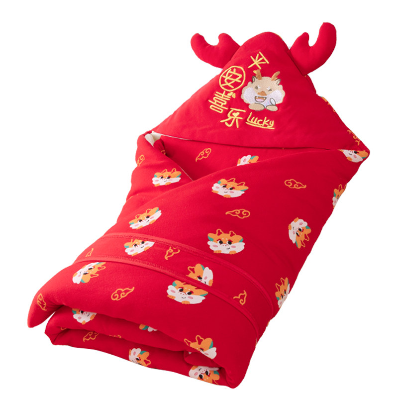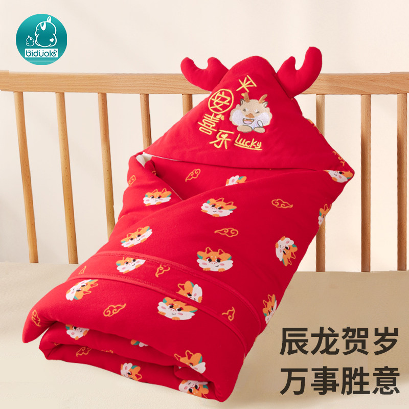 全棉进口红色包单包被初生婴儿纯棉a类春夏秋季 新生儿抱被 薄款