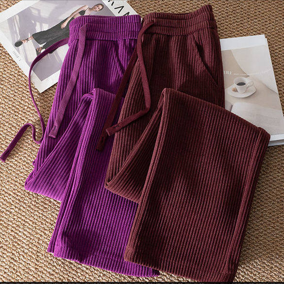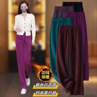 子 遮肉紫色灯芯绒裤 加绒加厚雪尼尔秋冬胖mm300斤阔腿裤 子女新款