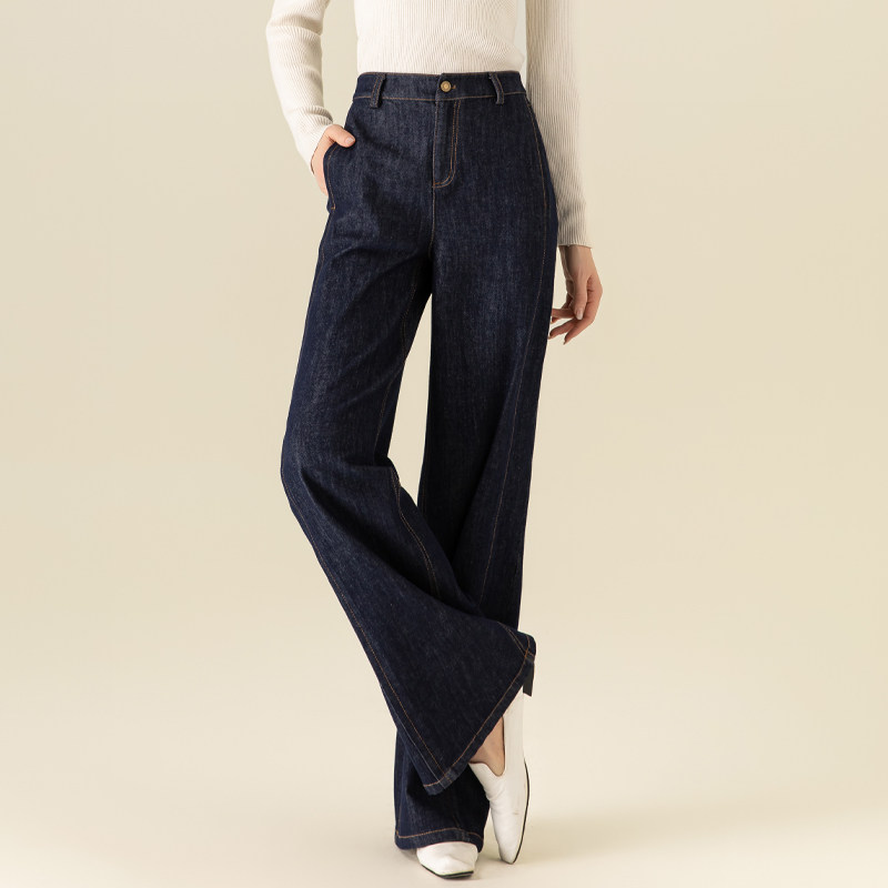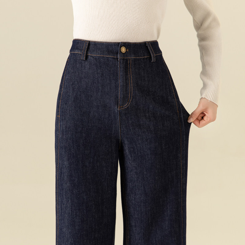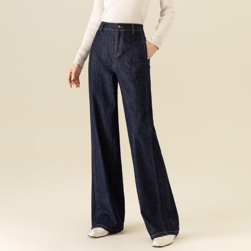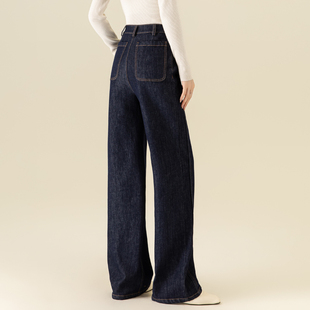 新款 深蓝色窄版 女高腰显瘦2025春秋装 直筒牛仔裤 小个子宽松 阔腿裤