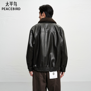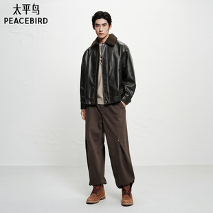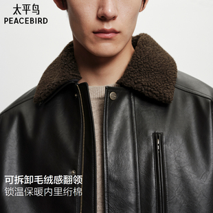 加厚保暖皮衣外套潮流休闲茄克 新款 太平鸟男装 毛领PU皮夹克25冬季