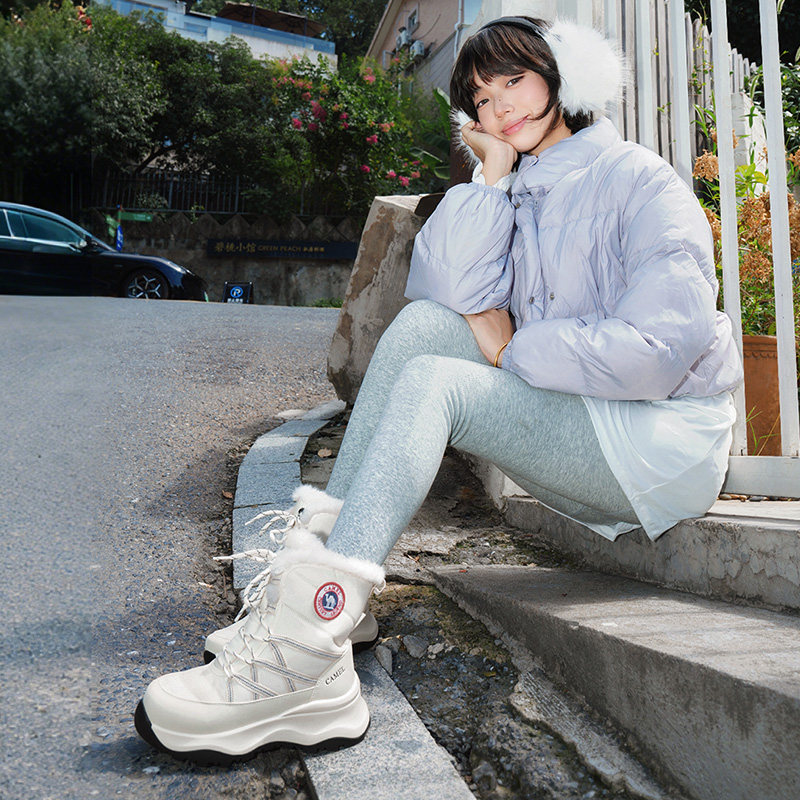 细细条 女冬韩系百搭中筒靴 东北棉靴雪地靴户外厚底加绒舒适新款