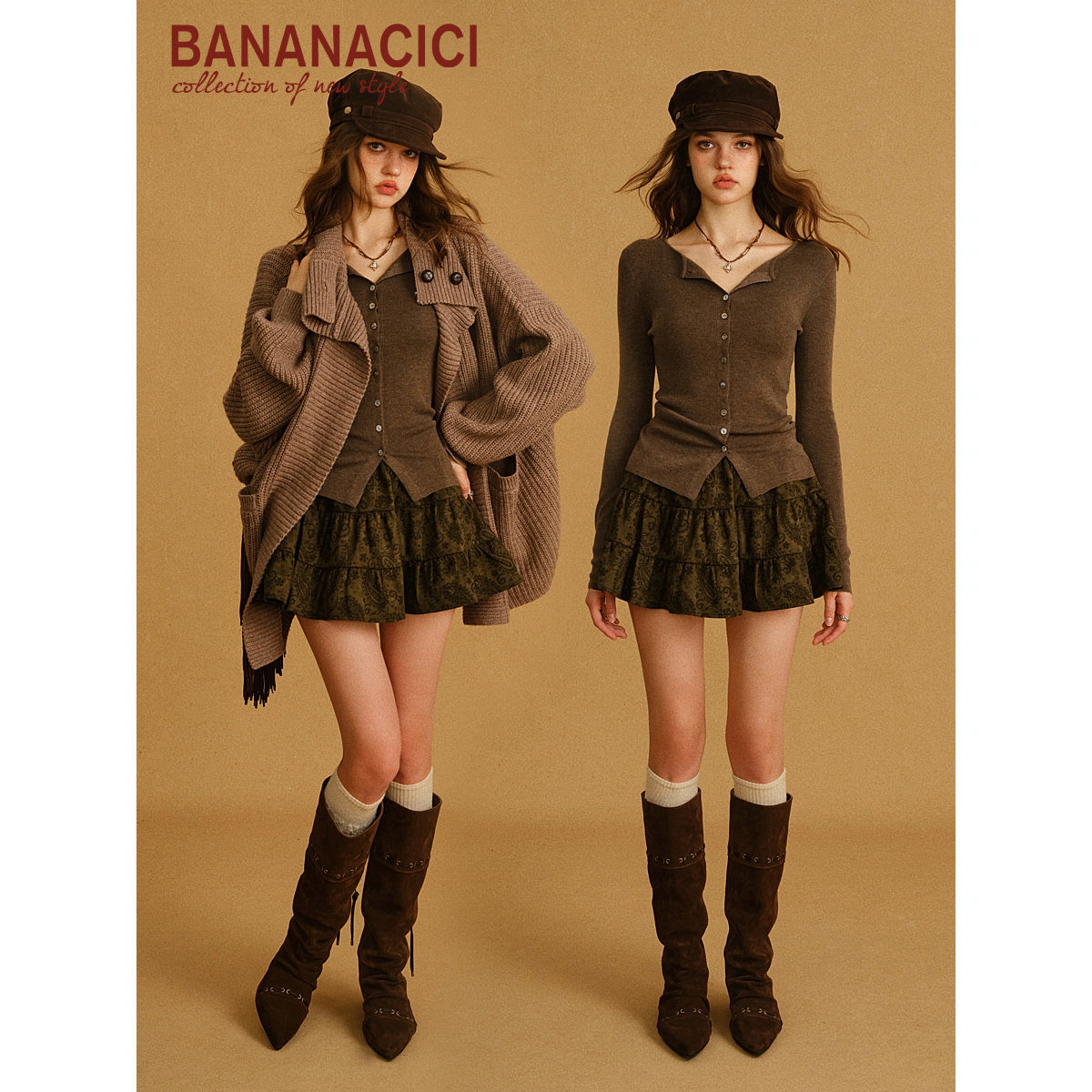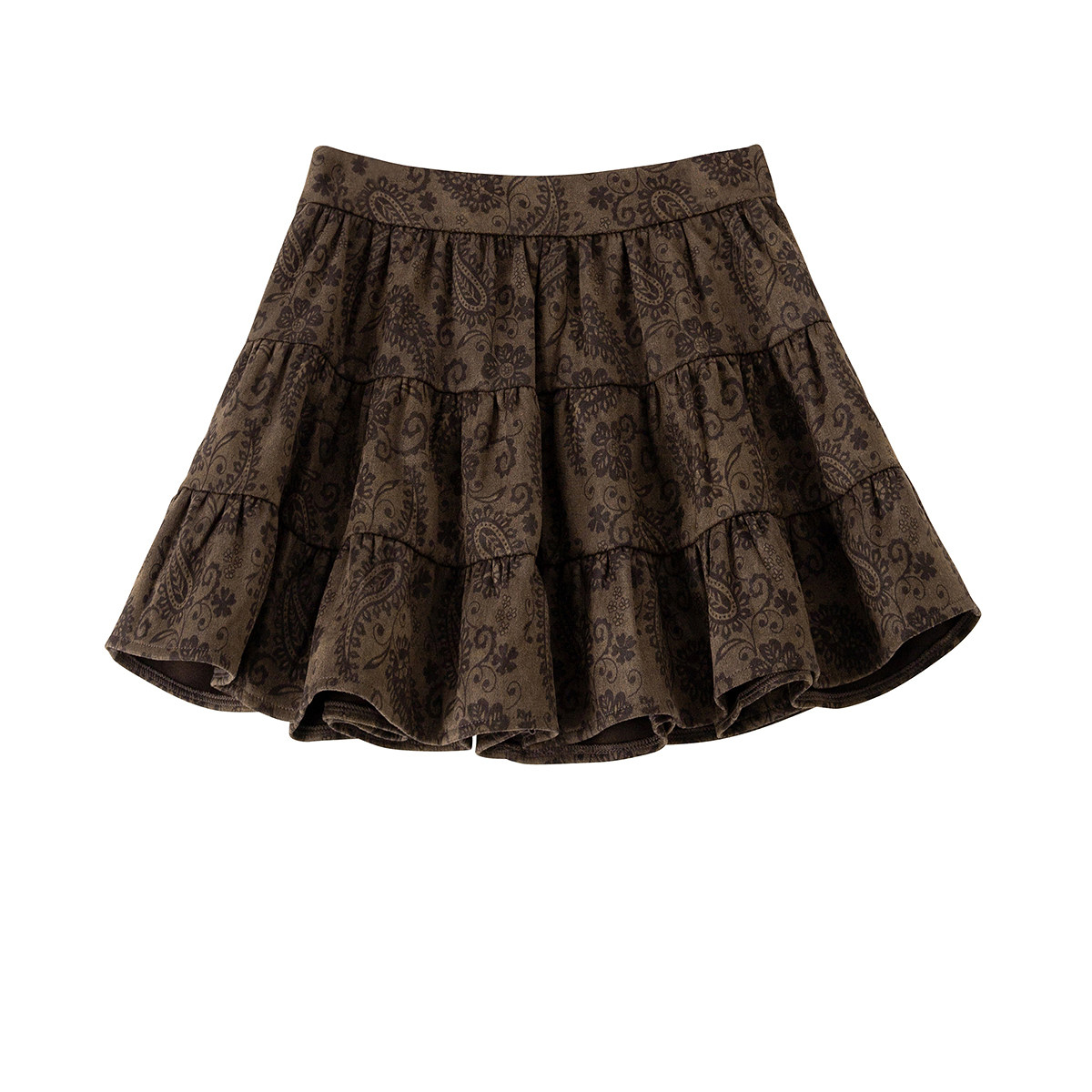 游牧民族风佩斯利腰果花麂皮蛋糕半裙 新款 BANANA CICI2025年冬季