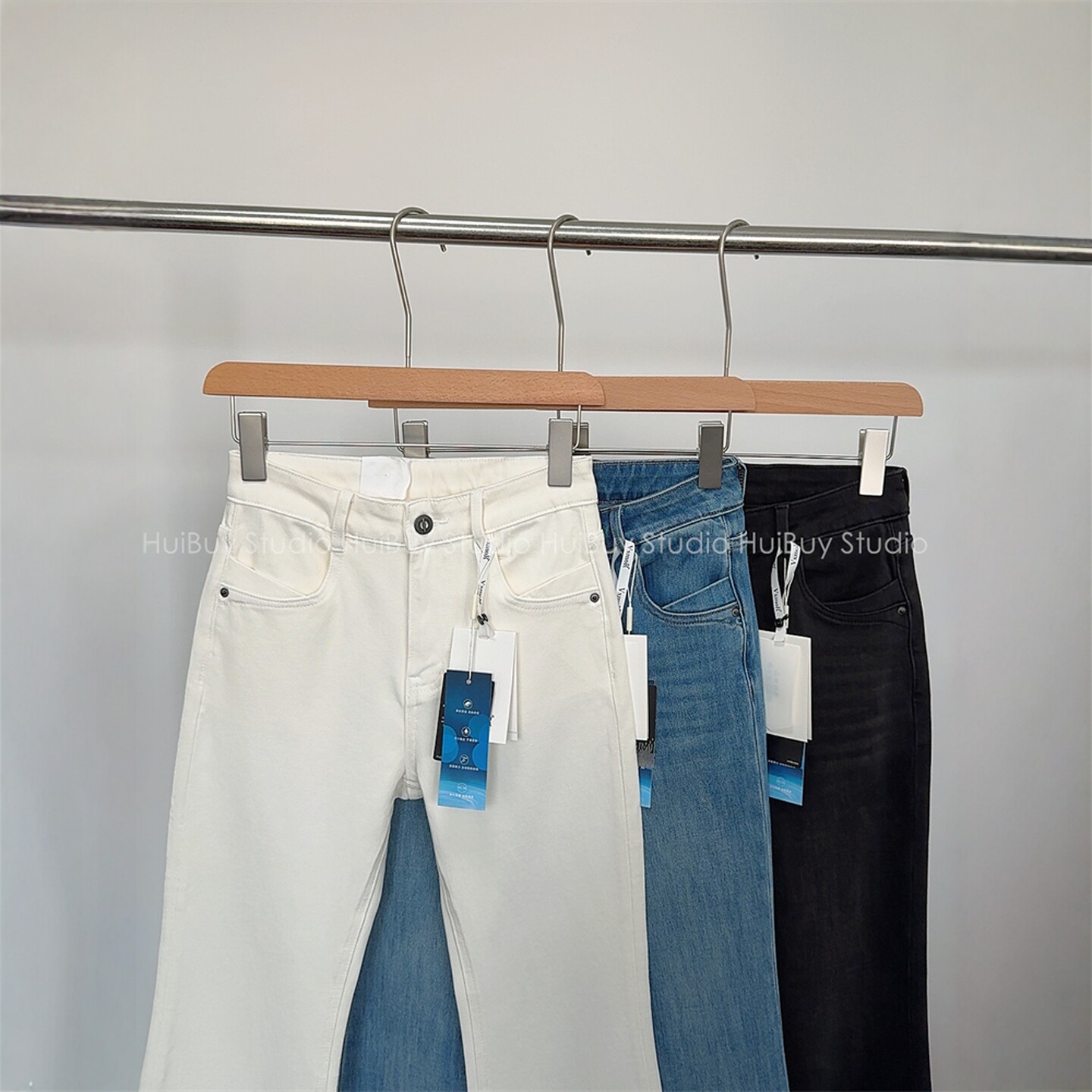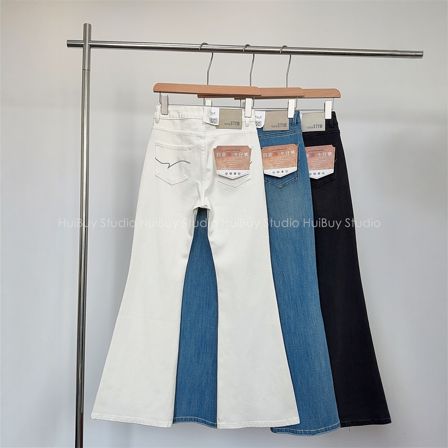 会buy实拍 牛仔裤 超模喇叭裤 修身 女秋新 大长腿高腰显瘦微喇裤