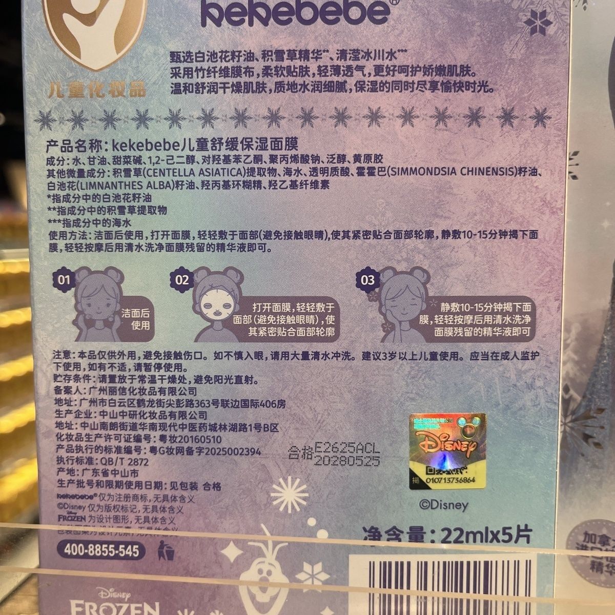 女童护肤品3片 贝德美儿童面膜宝宝专用补水保湿 U先付邮试用