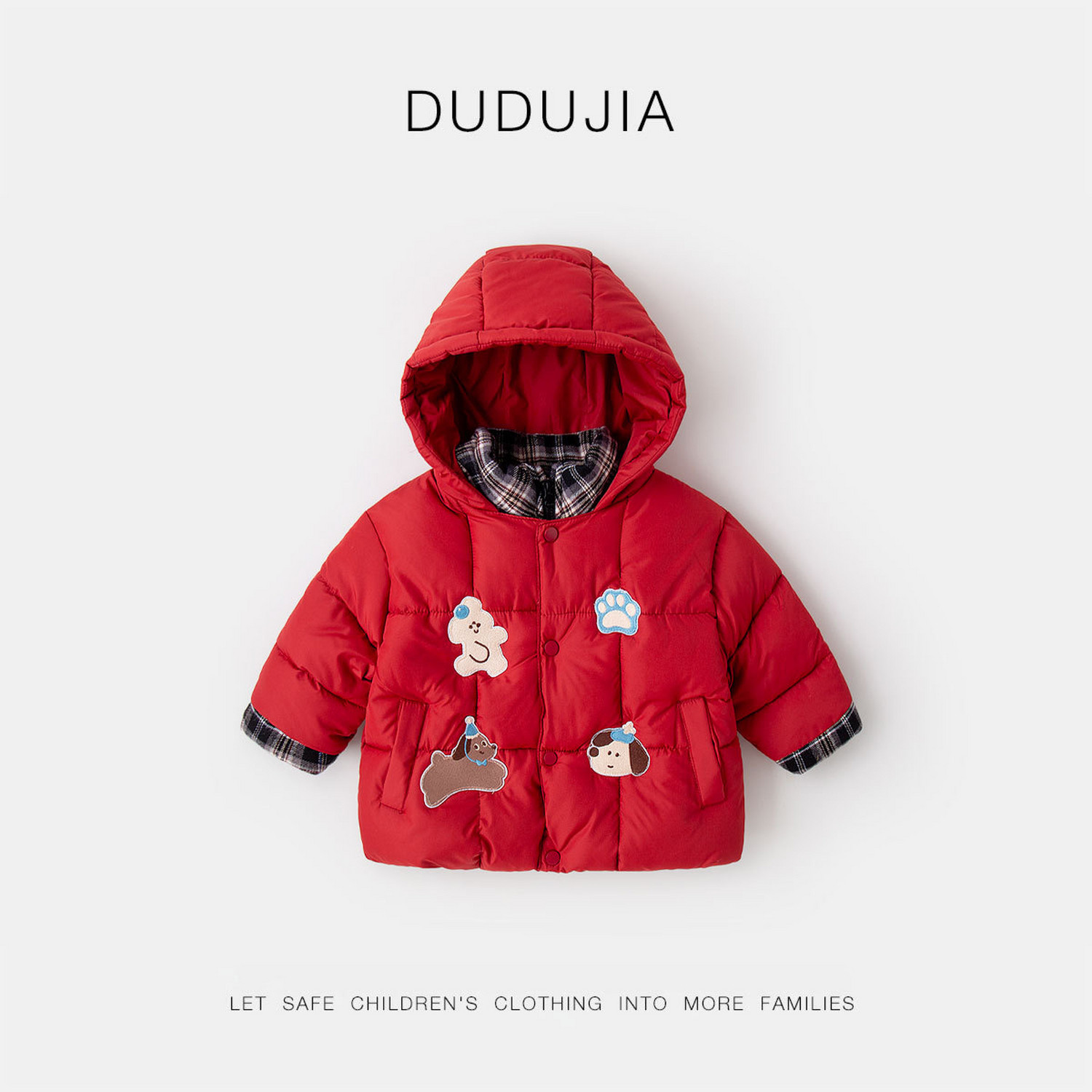 类 男童外套洋气儿童棉袄红色女童衣服冬装 嘟嘟家宝宝棉服冬季 新款