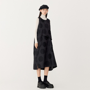 波点提花剪花立裁背心裙黑色连衣裙长裙女 AUM噢姆春季 FaFa裙