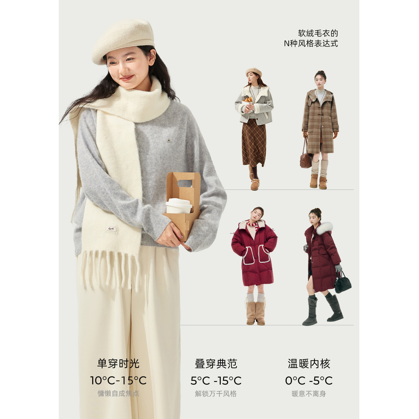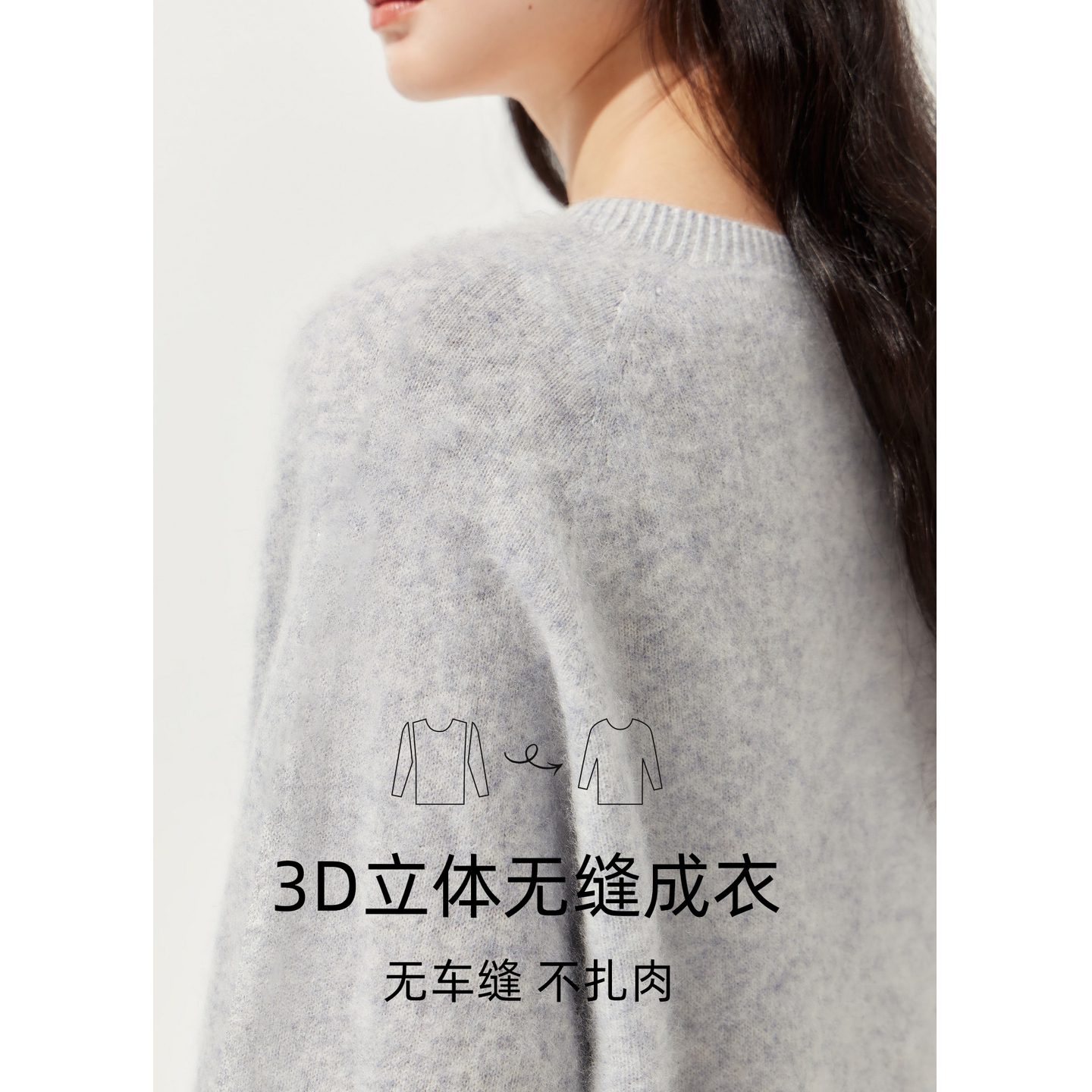 高级感上衣宽松打底针织衫 圆领100%纯山羊绒衫 女高端毛衣秋冬新款