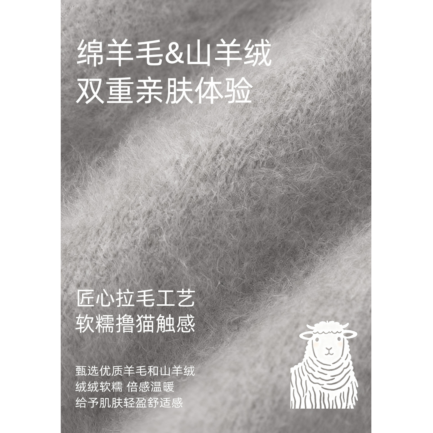猫酱紫羊毛山羊绒混纺无缝一体拉毛毛衣