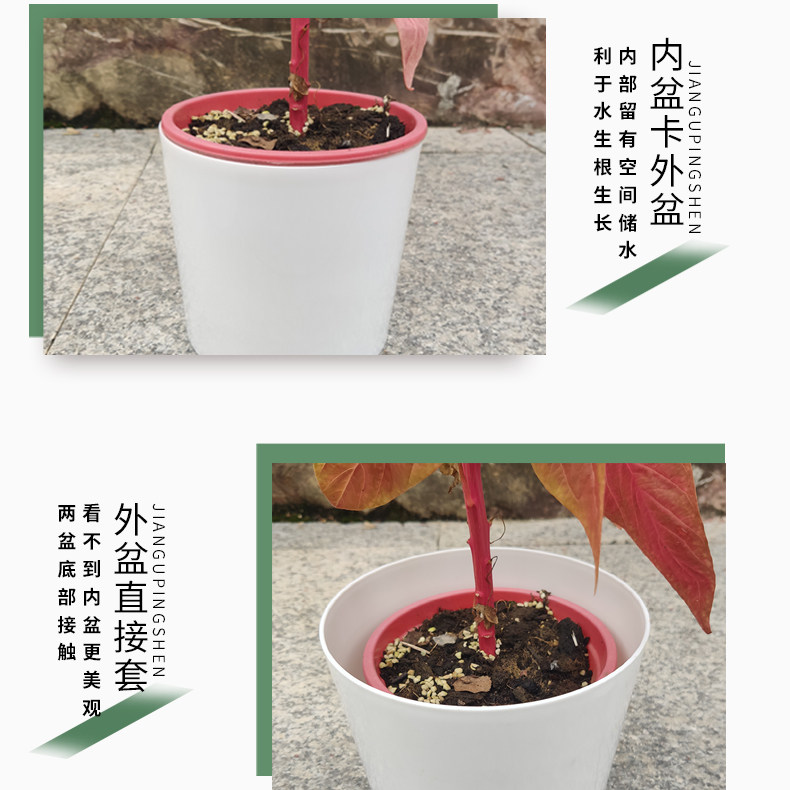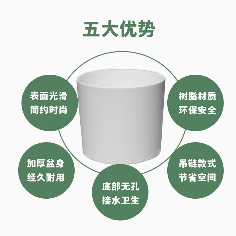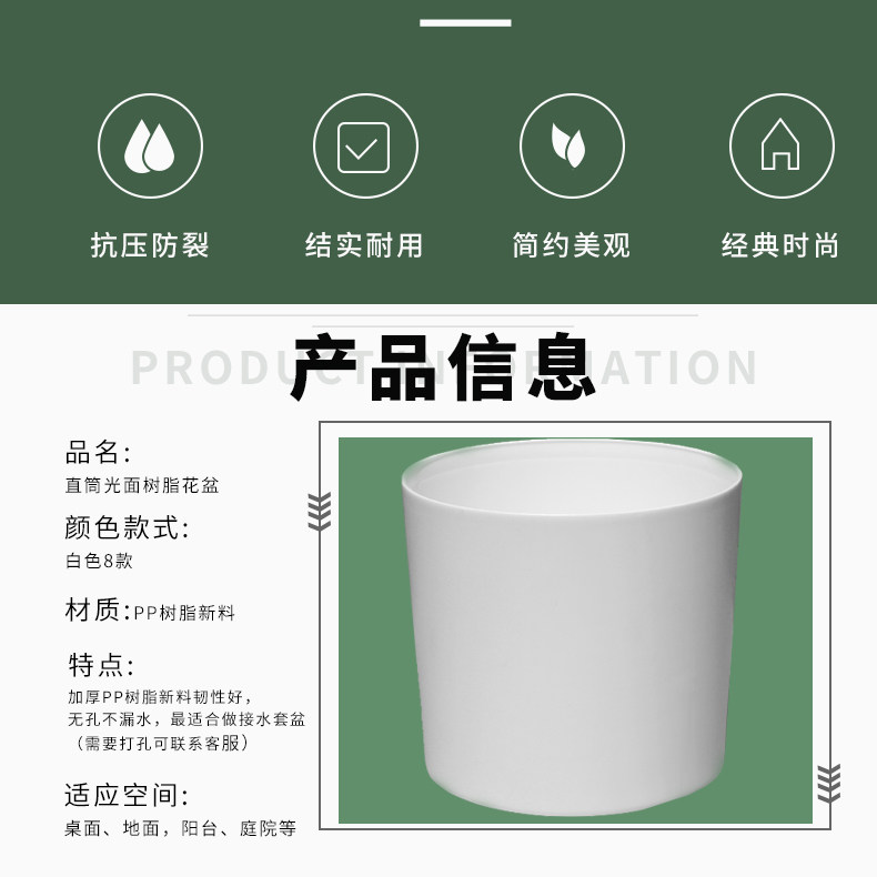 白色树脂直筒花盆不漏水垃圾桶塑料加厚种植套盆圆形接水外盆托盘
