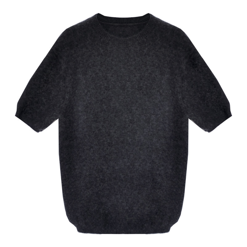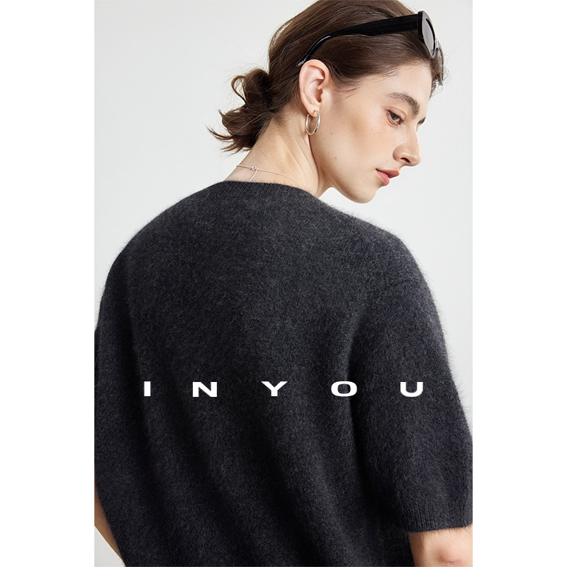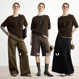 上衣女秋 T恤针织衫 因由 知识分子软糯羊毛气质纯色半圆领五分短袖
