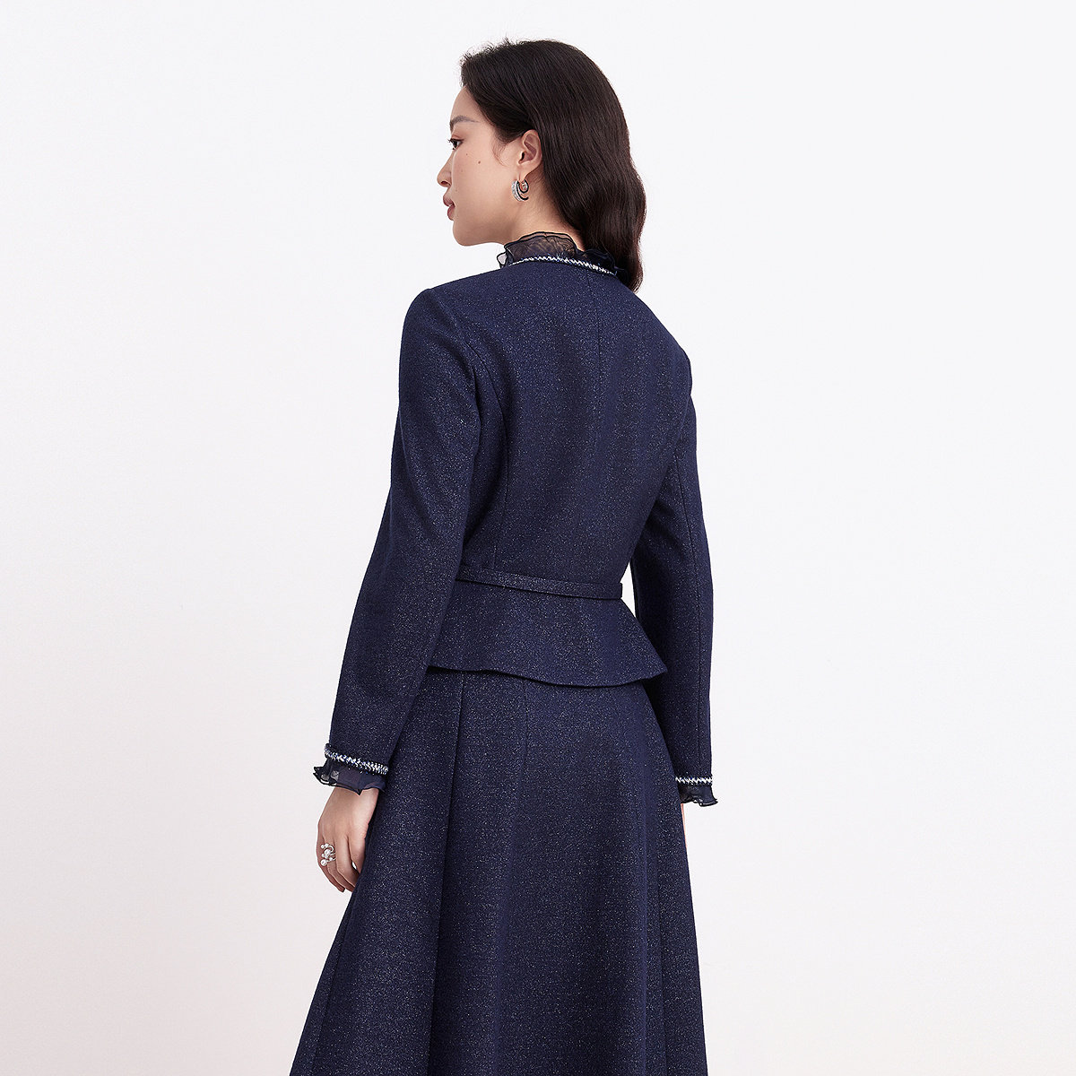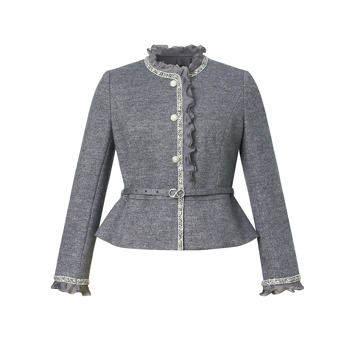 修身 香风复古通勤短款 开扣羊毛呢外套女 法式 珂莱蒂尔冬季