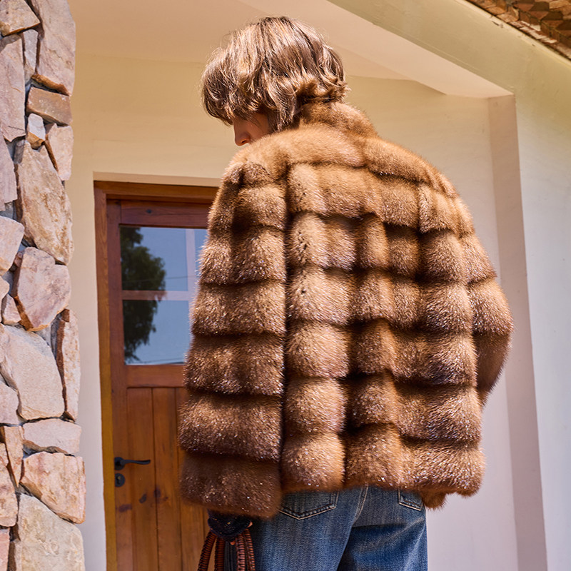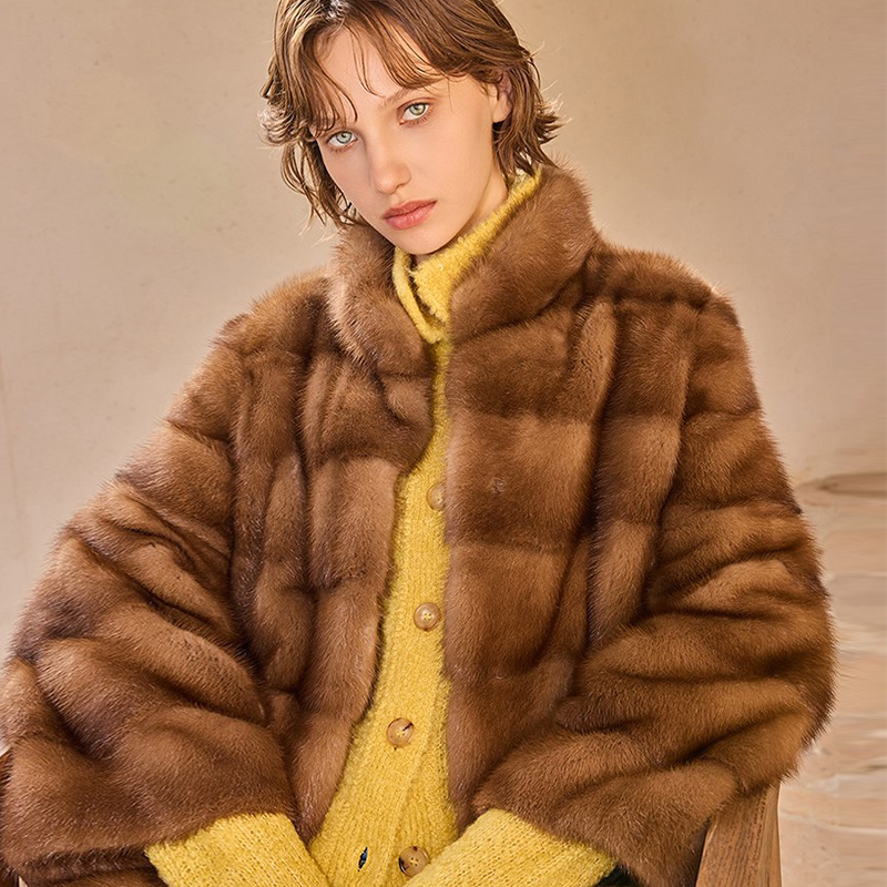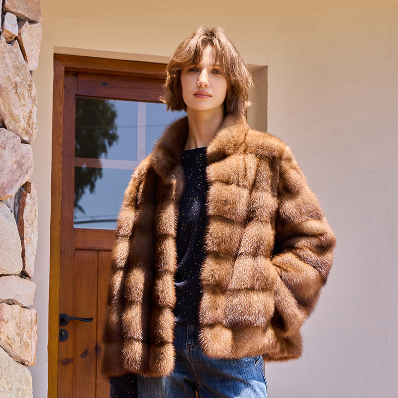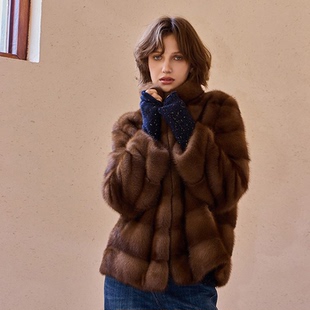THEEASE舒适派国际公约野生水貂真丝里衬优雅贵气奢华女皮草外套