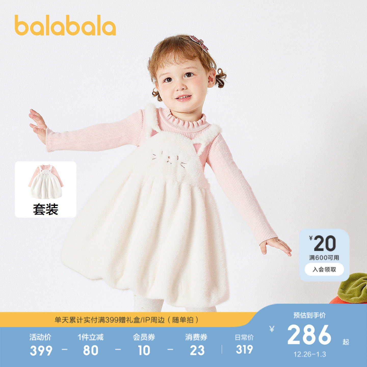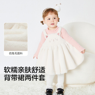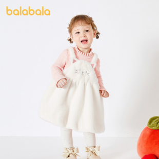 秋冬2025新款 巴拉巴拉女童连衣裙套装 背带裙两件套萌 商场同款