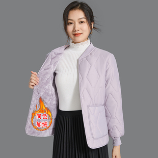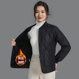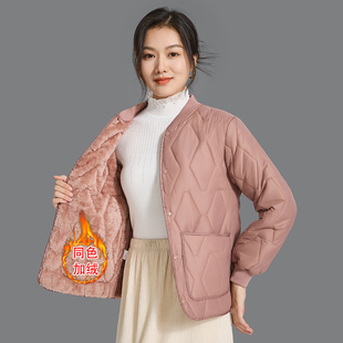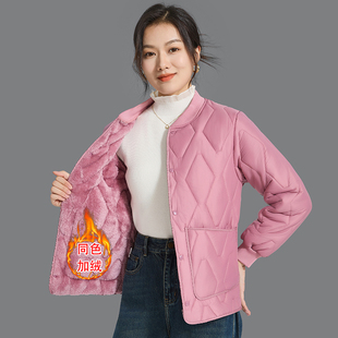 2025秋冬新款 加绒加厚羽绒棉内胆女螺纹领棉衣保暖百搭棉服外套