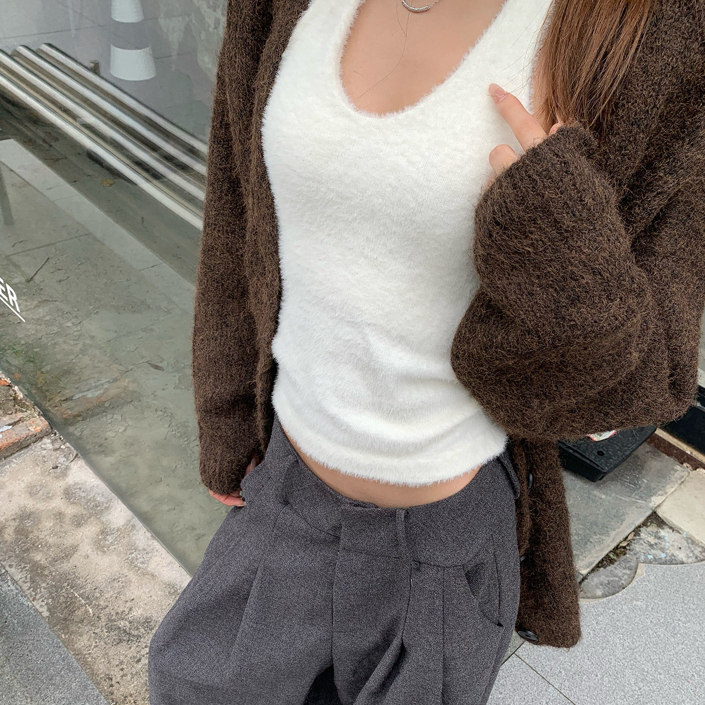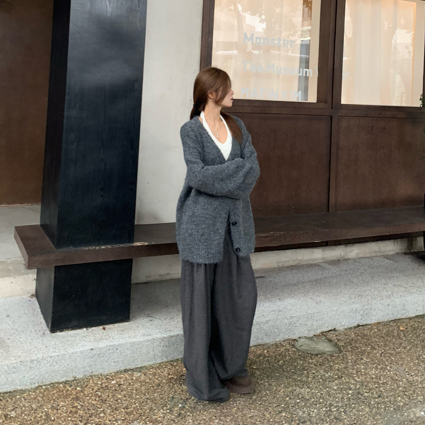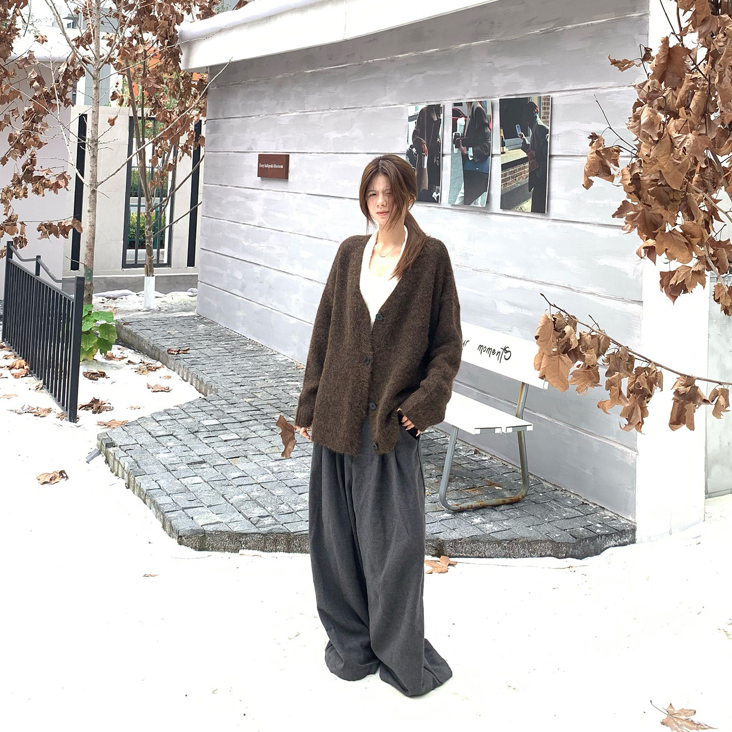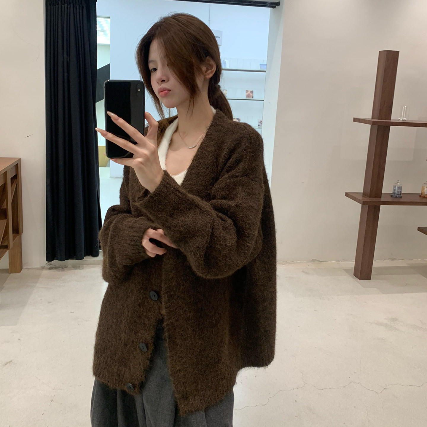 宽松上衣 外套女休闲百搭V领长袖 E7Q8 韩系高级慵懒风软糯针织开衫