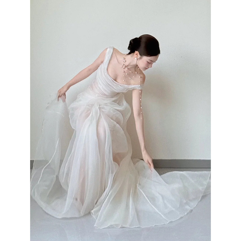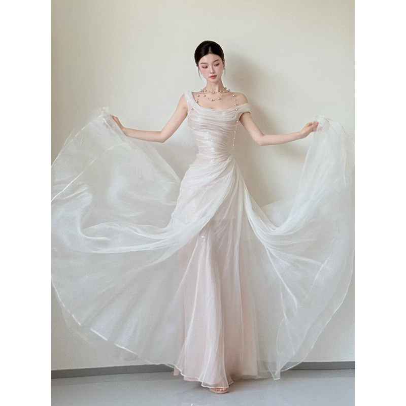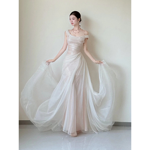 新娘婚礼晨袍订婚晚宴生日聚会超仙法式 亮片轻婚纱高级感挂脖礼服
