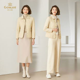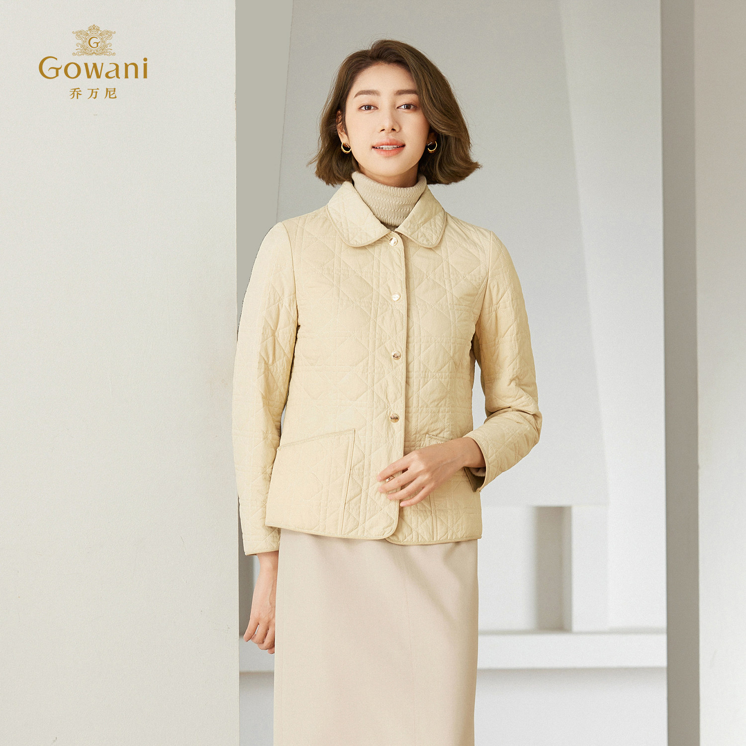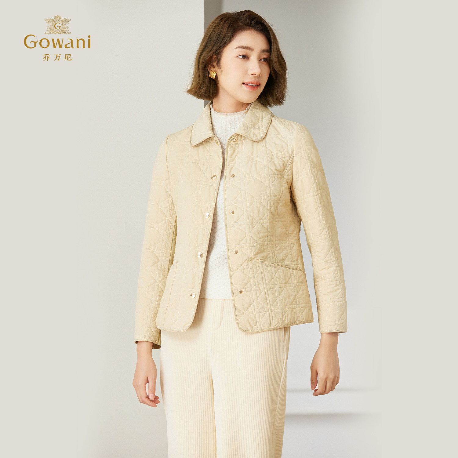 乔万尼复古格纹轻薄保暖棉服女短款 翻领气质高级感短外套EM4T601