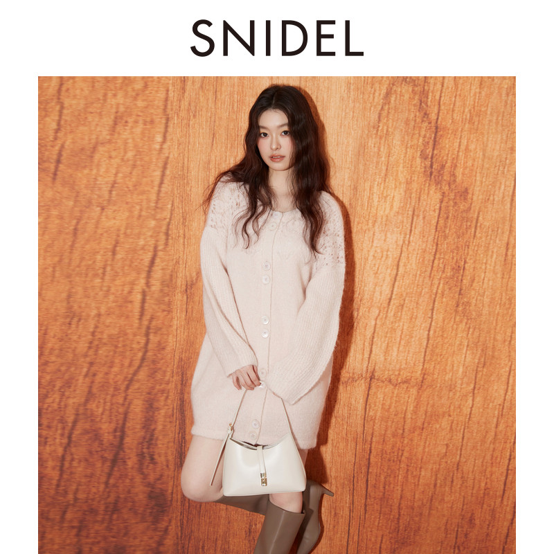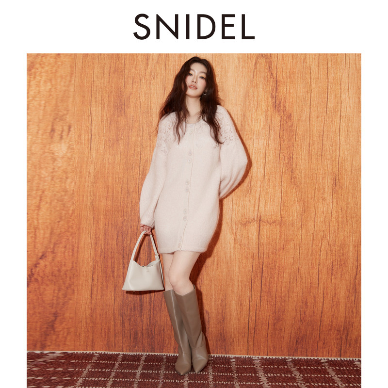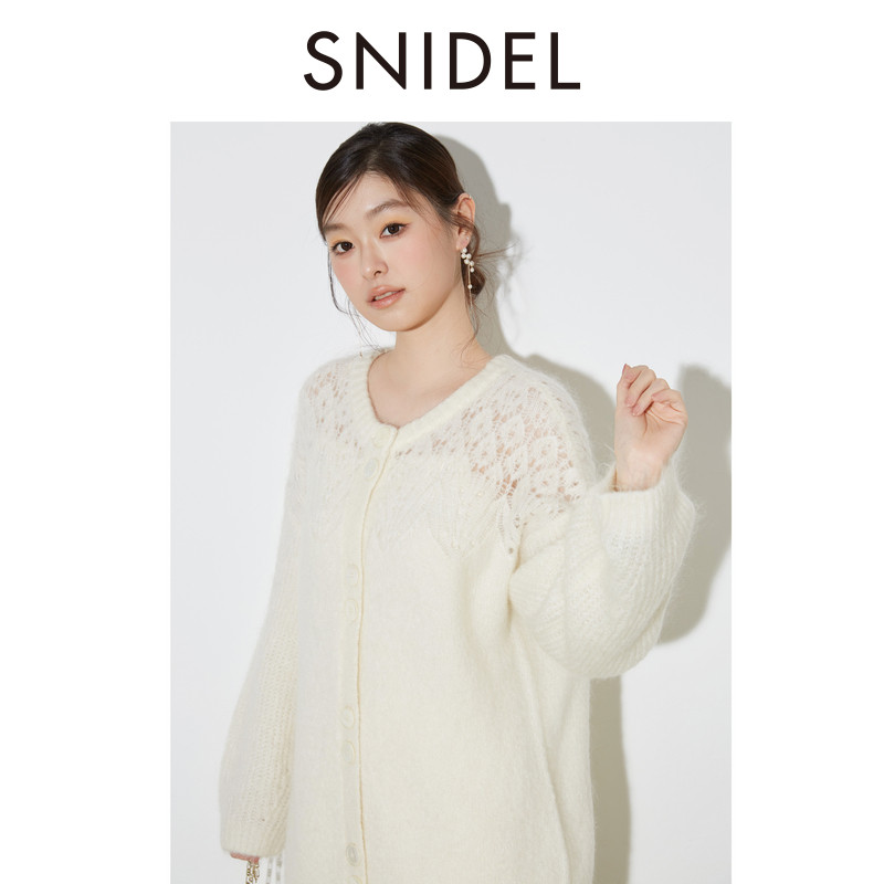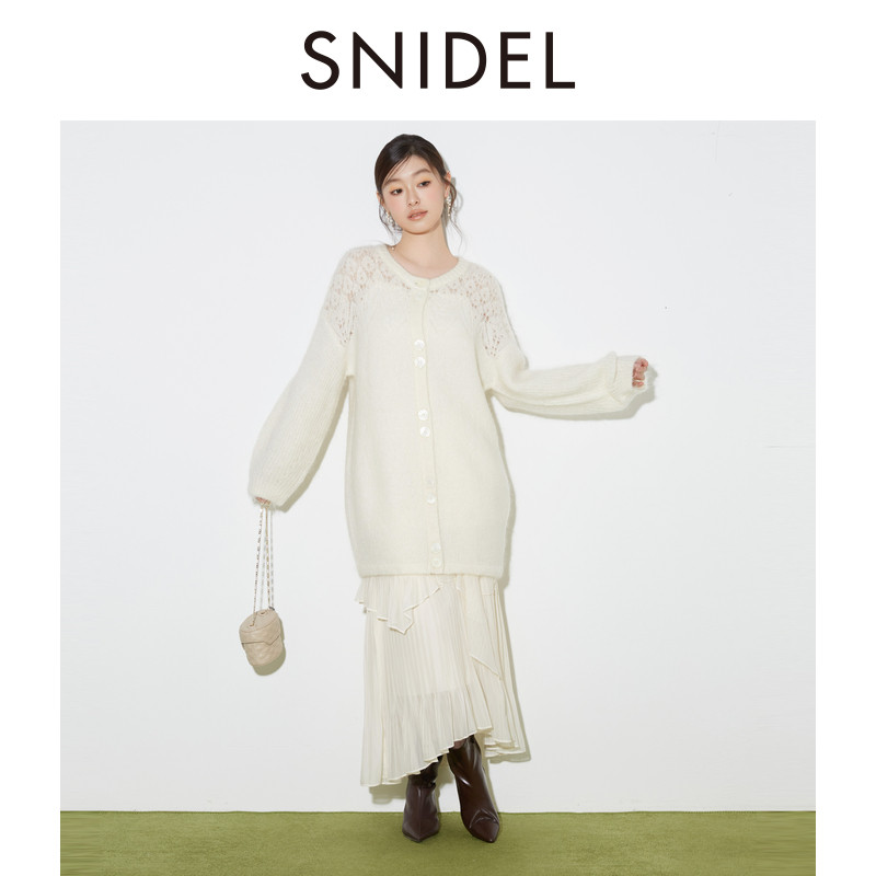 SNIDEL2025秋冬新品 甜美镂空钩花蝴蝶结系带针织连衣裙SWNO254312