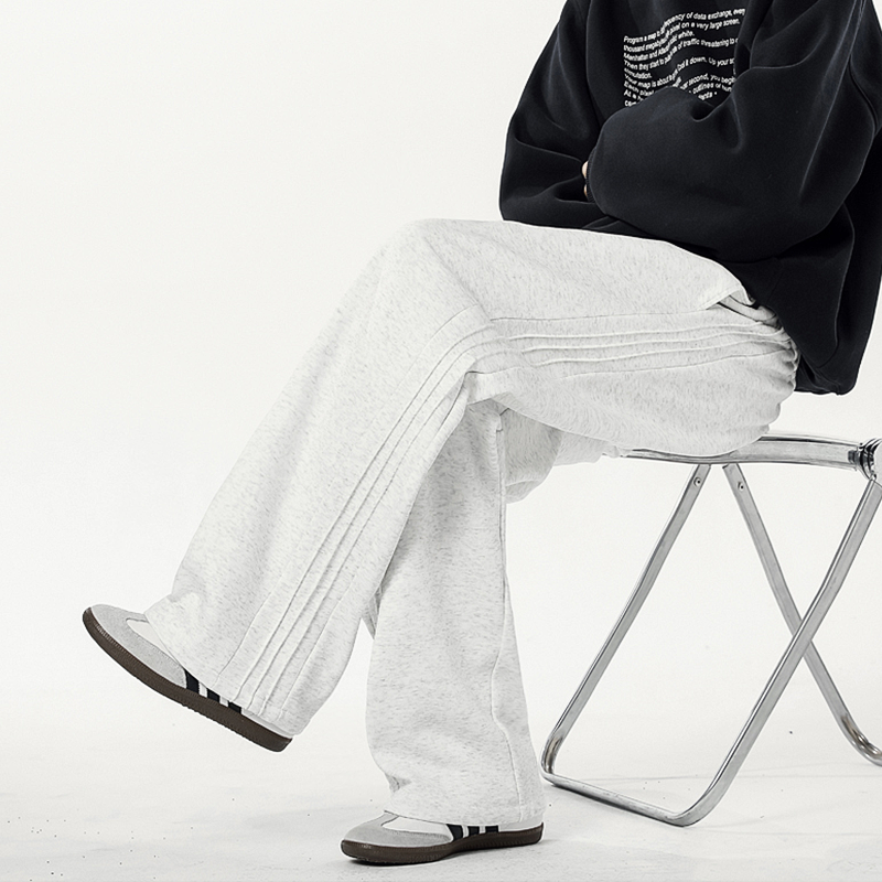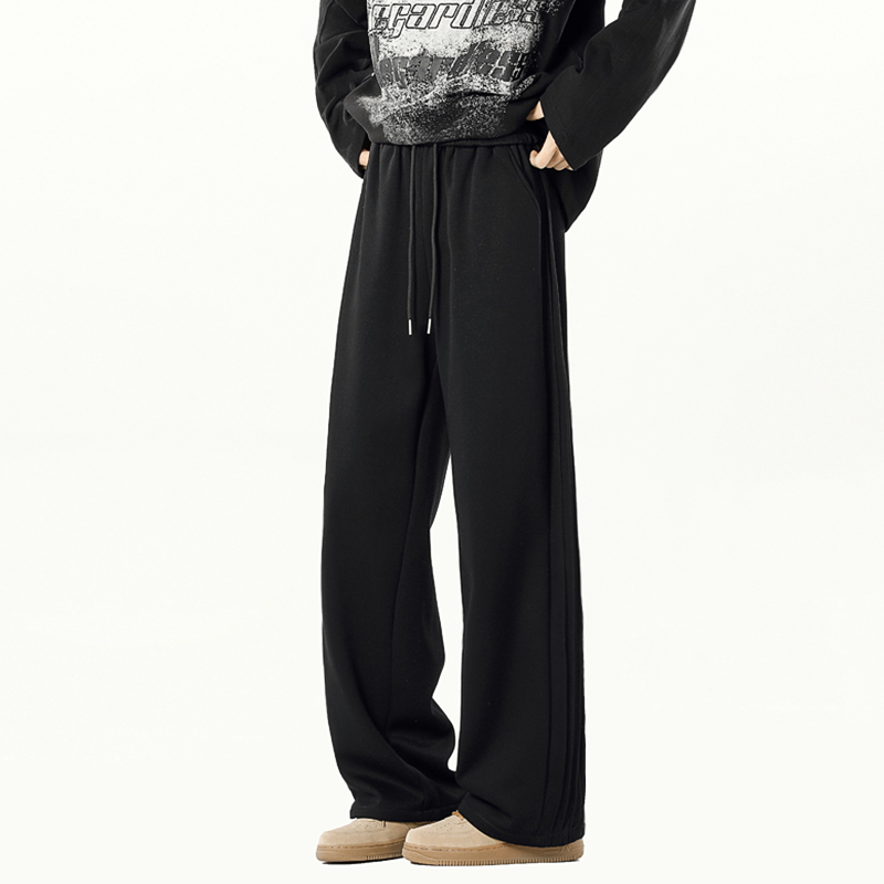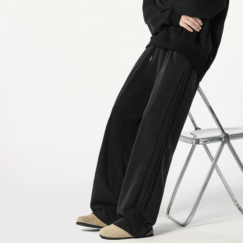 宽松阔腿长裤 NNEFC黑色条纹水洗做旧休闲卫裤 男休闲百搭直筒裤