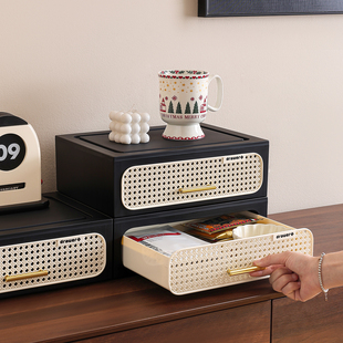 饰摆件化妆品置物架 柜装 中古风玄关藤编收纳盒抽屉式 入户门客厅鞋