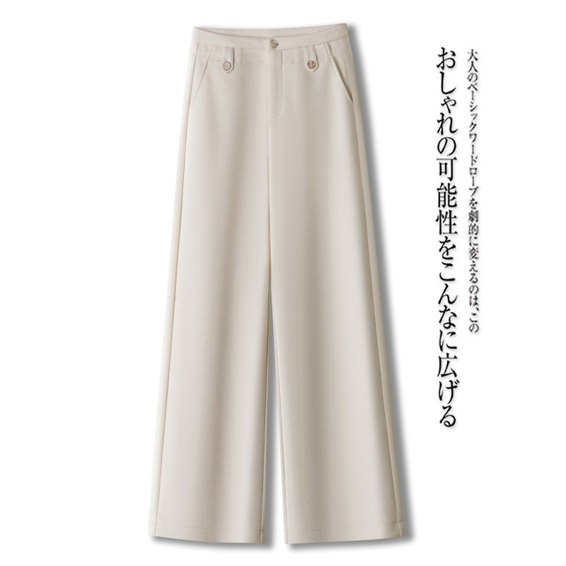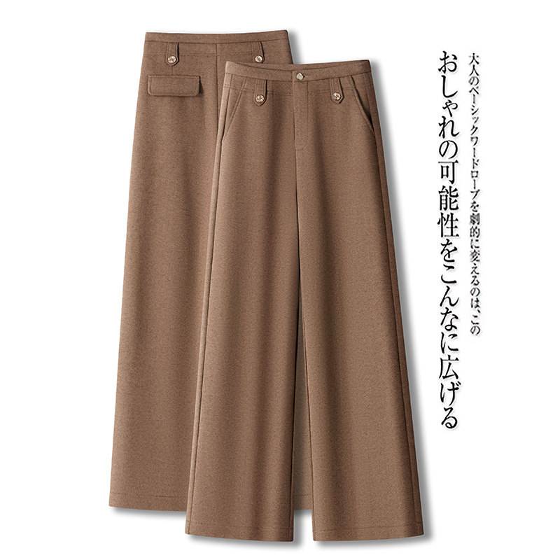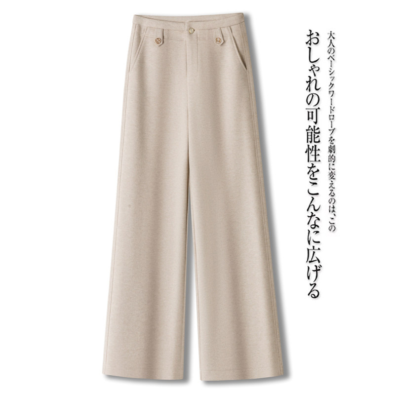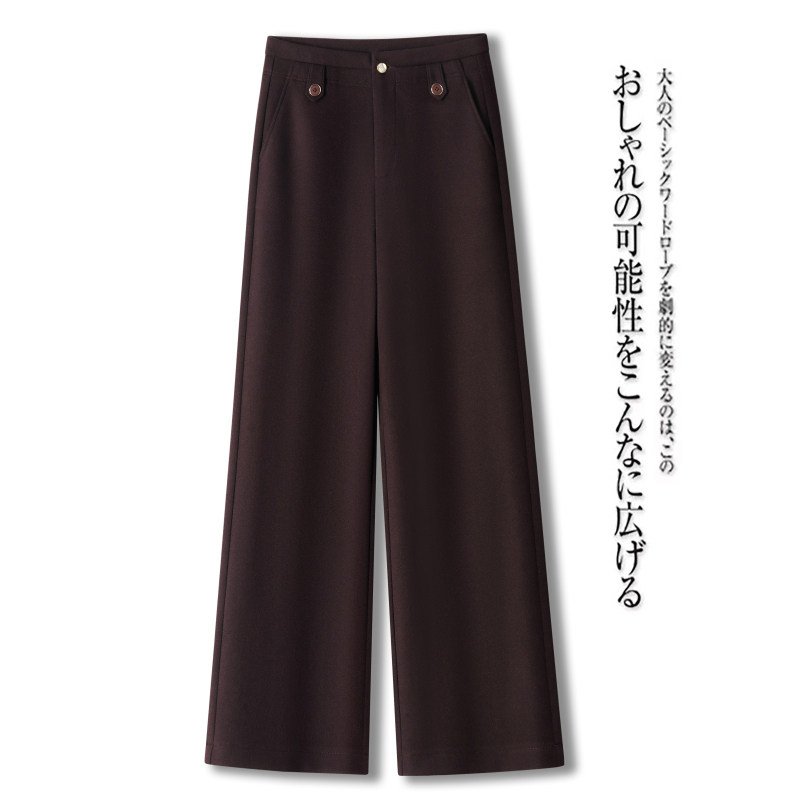 2025秋冬桑蚕丝绵羊毛气质减龄轻奢阔腿裤 高腰柔软休闲直筒女裤