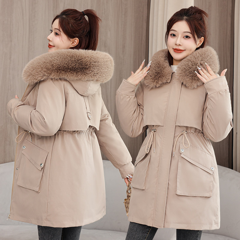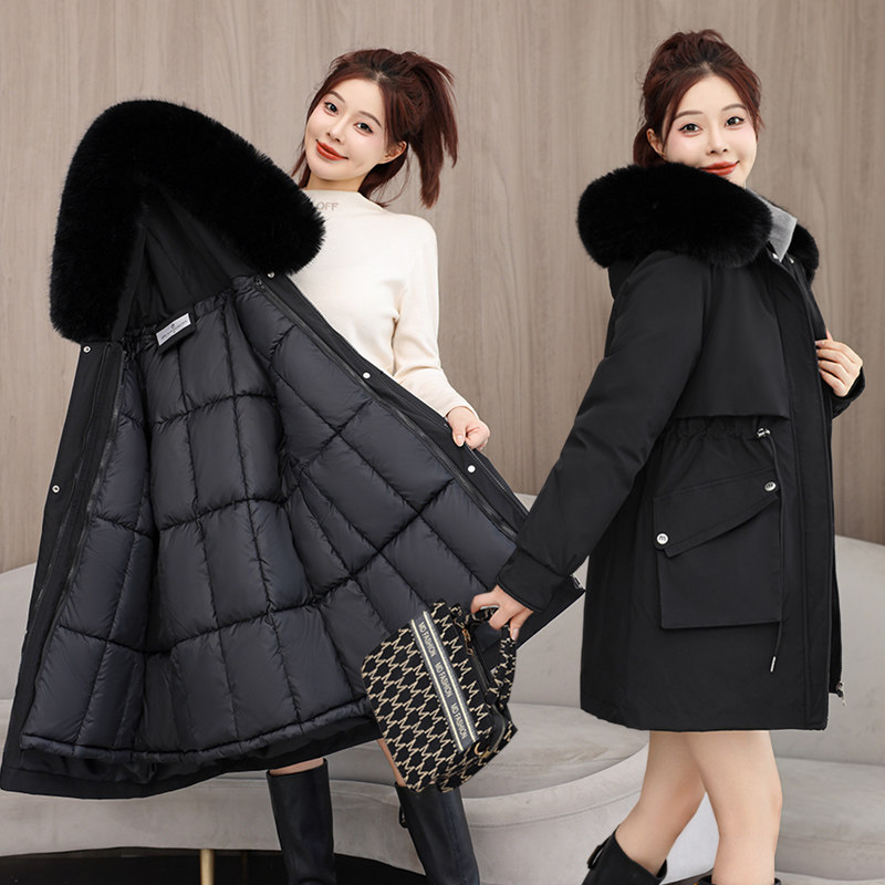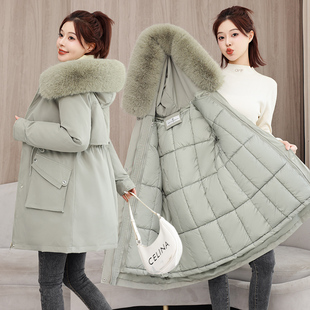 新款 棉服外套女2025冬季 加厚保暖连帽棉衣 收腰显瘦长款 胖mm特大码