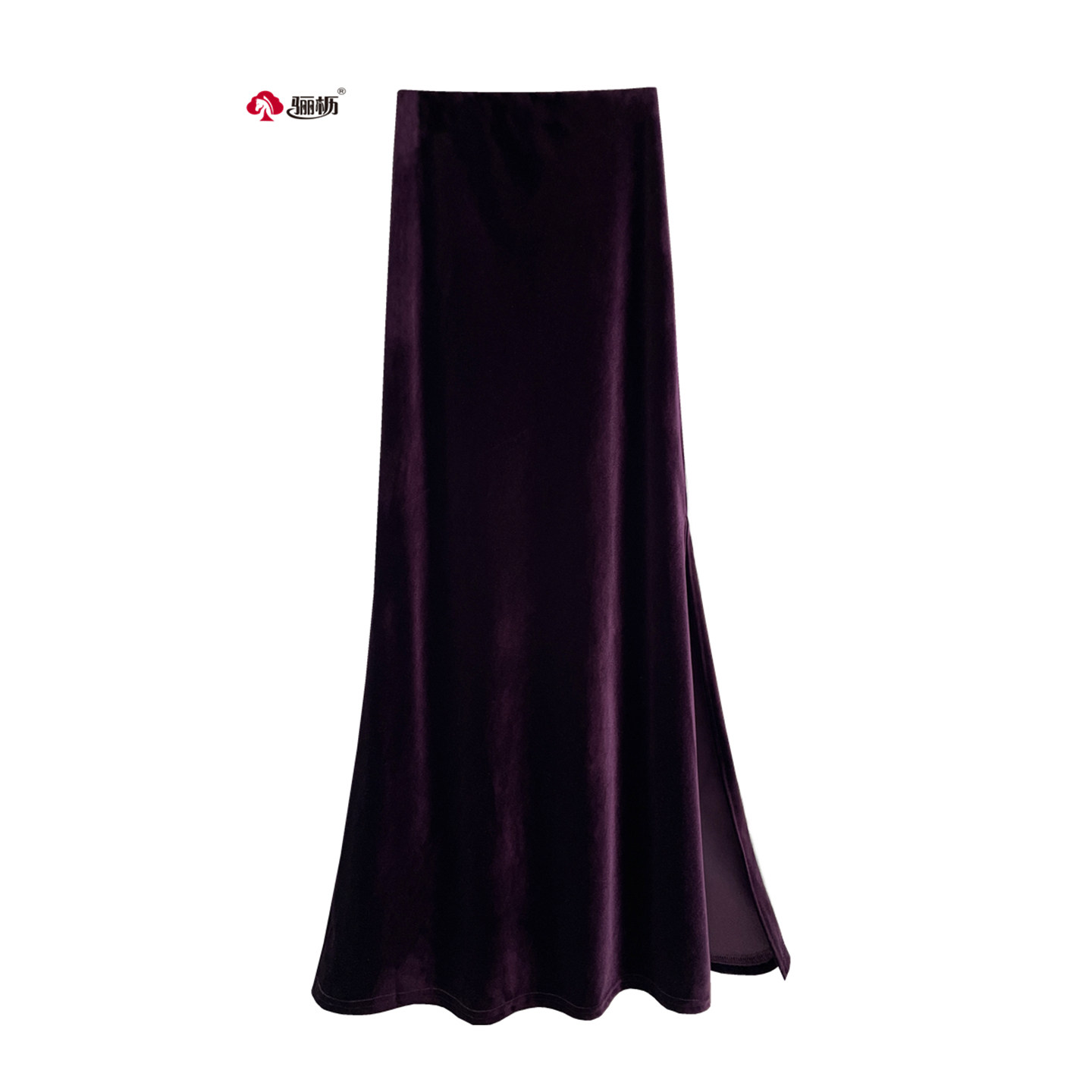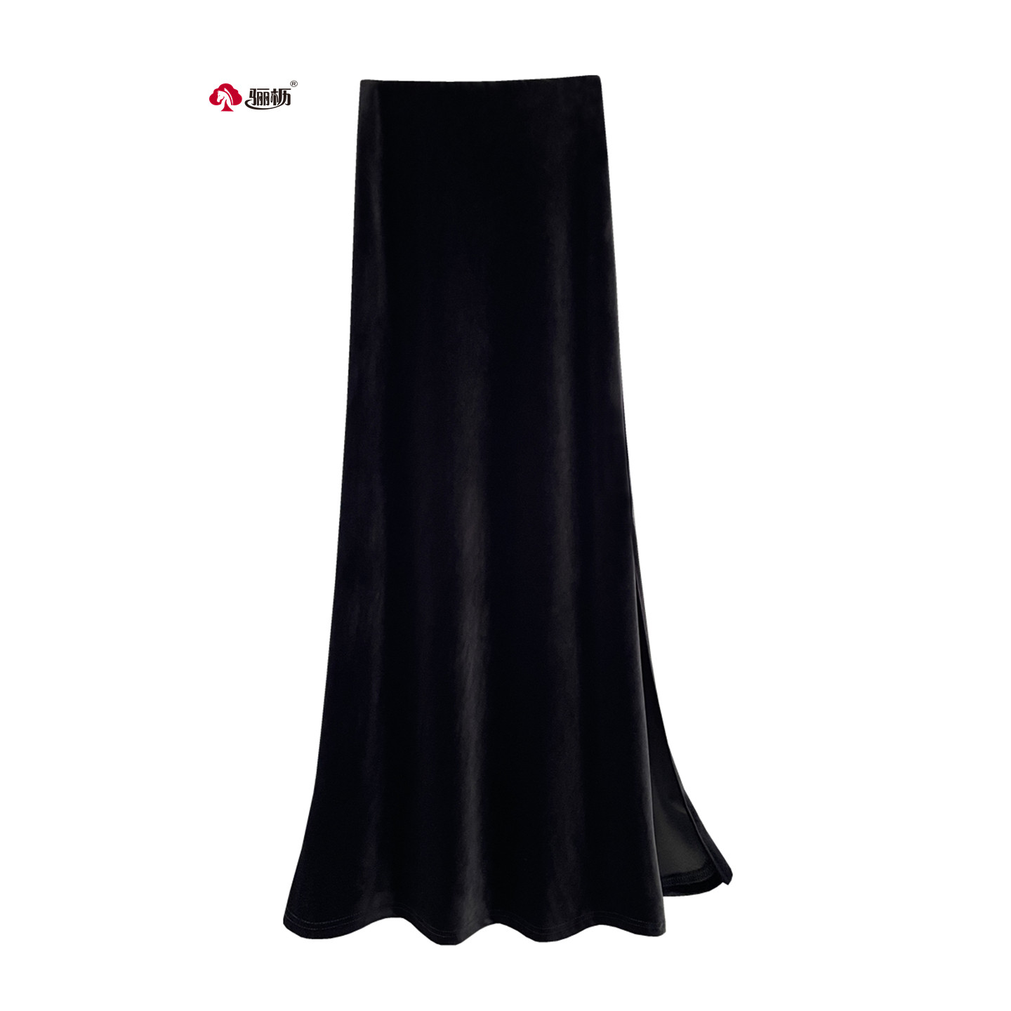 骊枥侧开叉丝绒鱼尾裙 高腰显瘦包臀长裙88 百搭通勤半身裙女春款